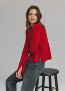 Elbow Sleeve Relaxed Crew in Maraschino