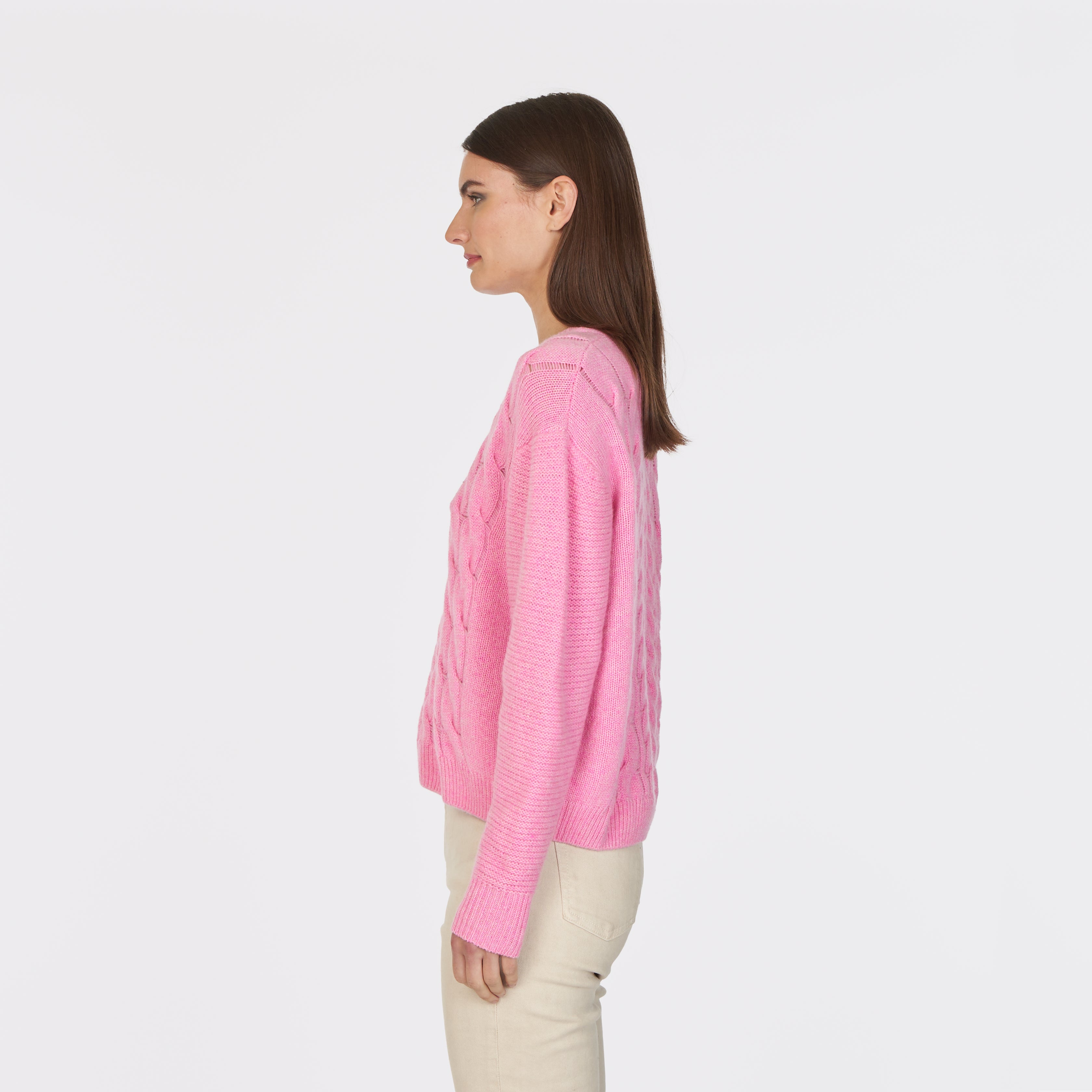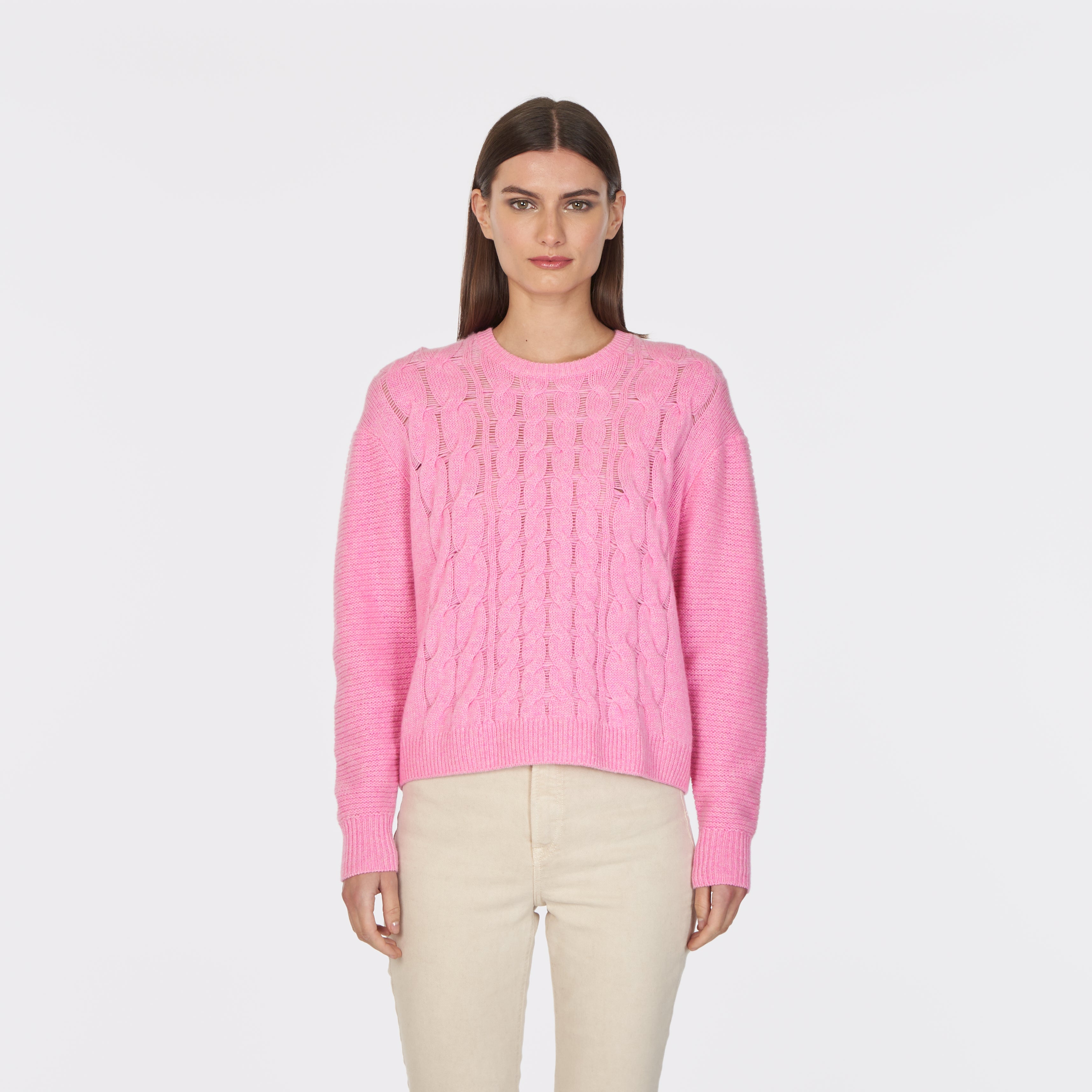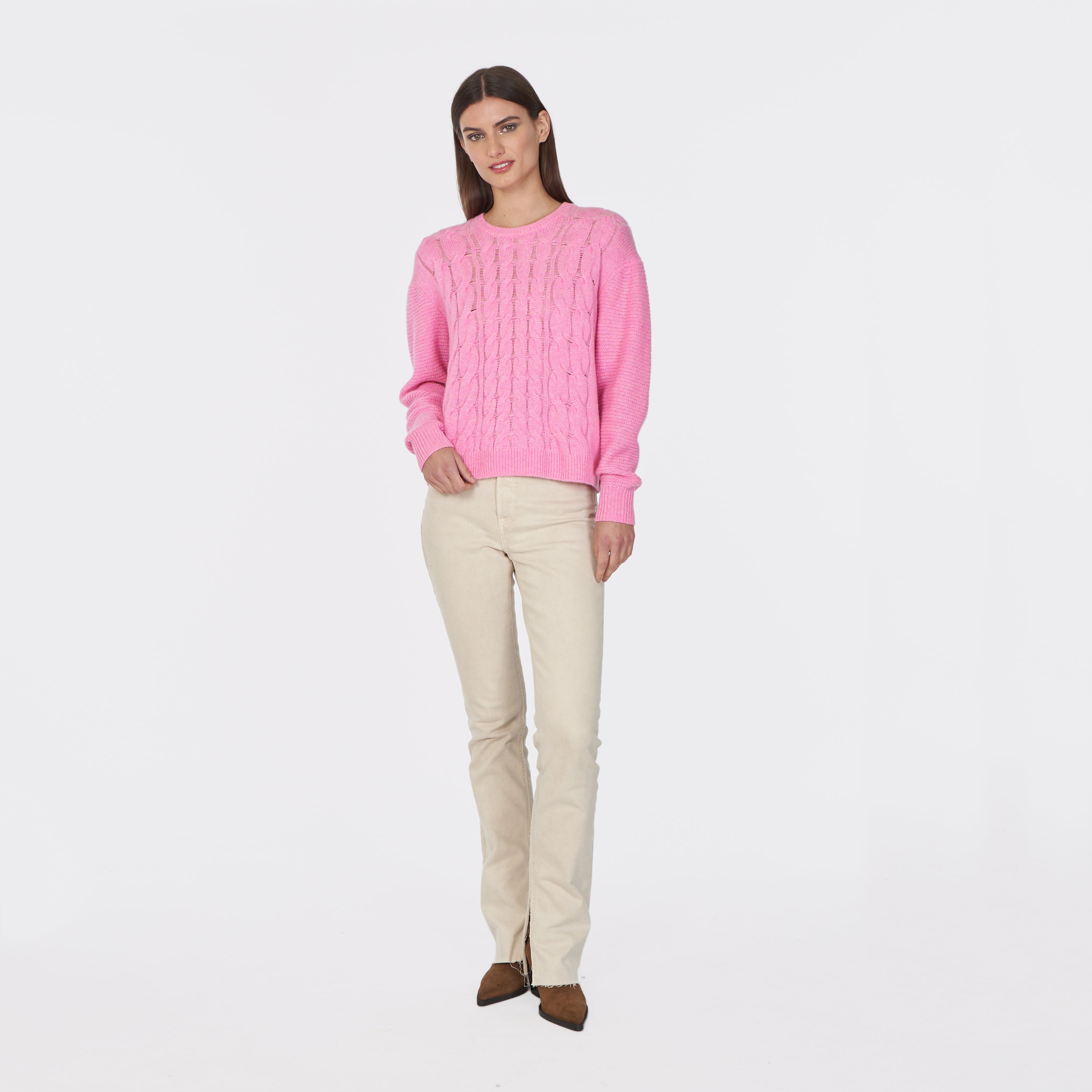 6 Ply Open Cable Crew in Carnation