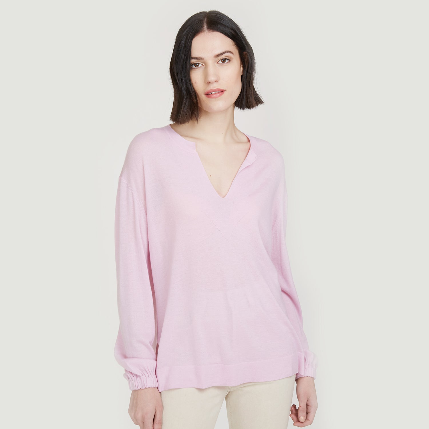 Balloon Sleeve Tunic in Beige or Pink by Autumn Cashmere. Women's Basic Spring/Summer Sweater. 100% Cashmere
