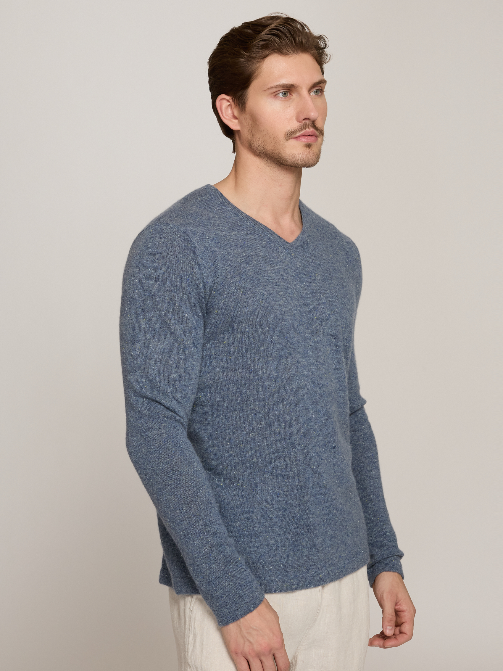 R50132 | Men’s Basic V-Neck w/ Open Bottom in Riverwash by Autumn Cashmere
