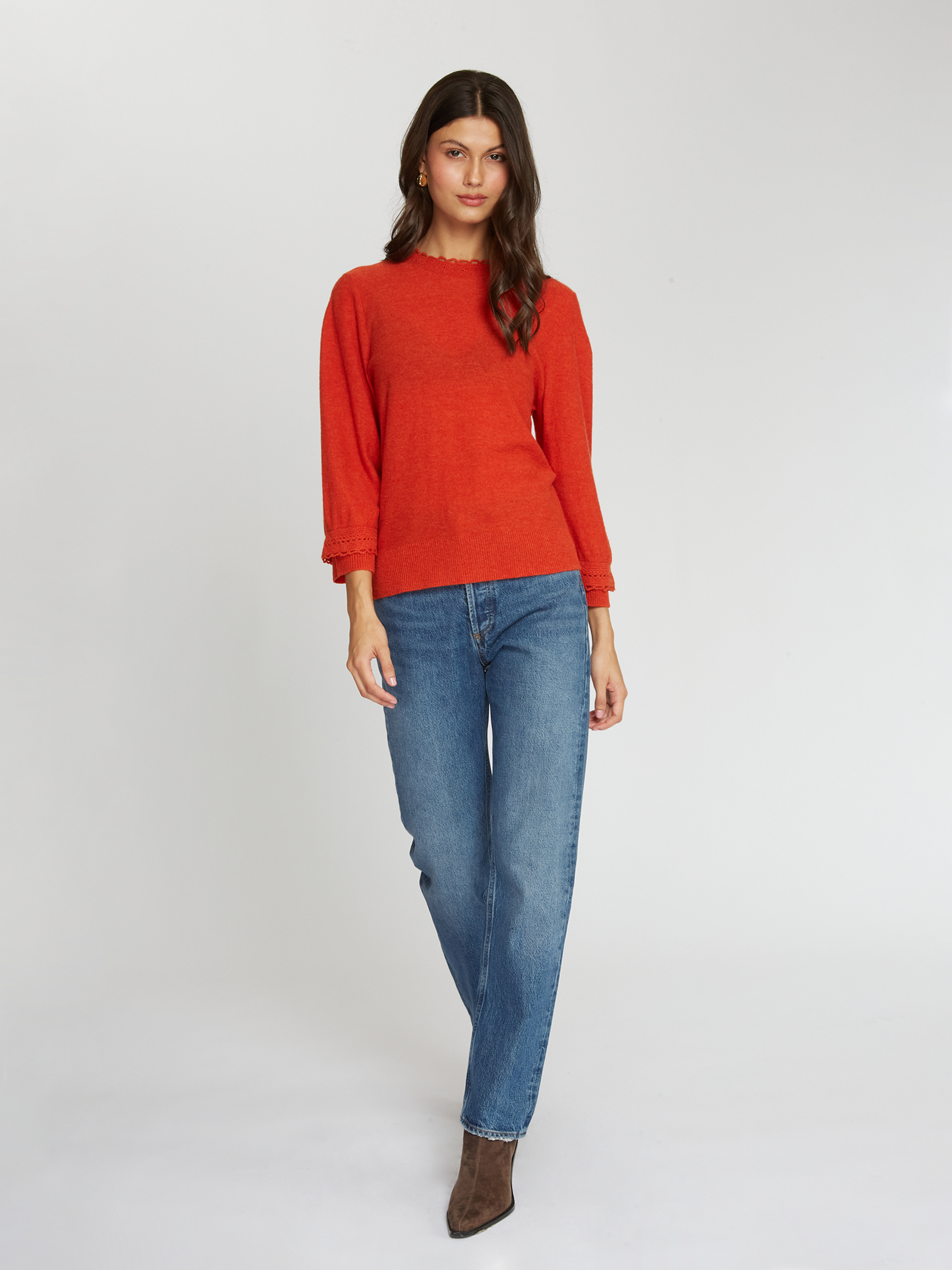 Blouson 3/4 Sleeve w/ Crochet Edging in Paprika