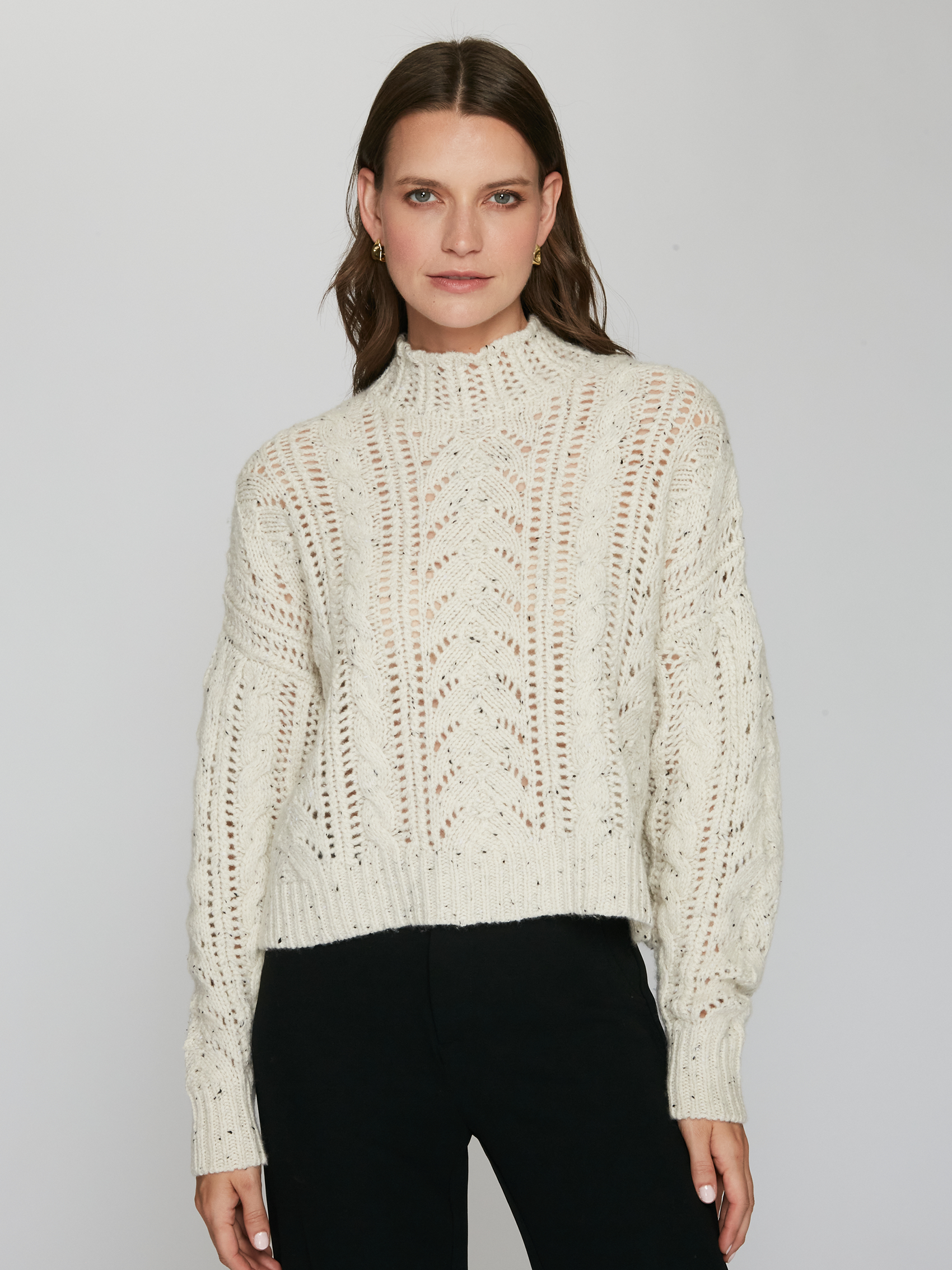 Blouson Sleeve Cable Crew in Domino