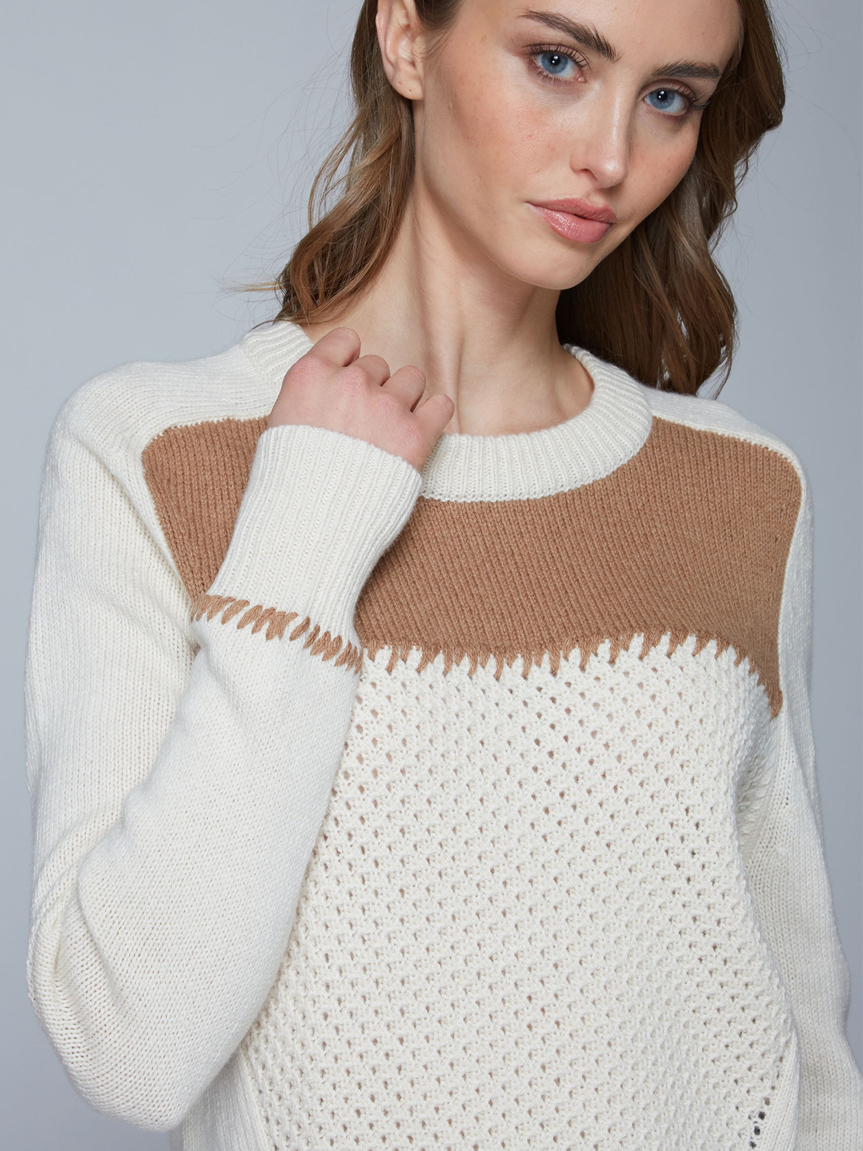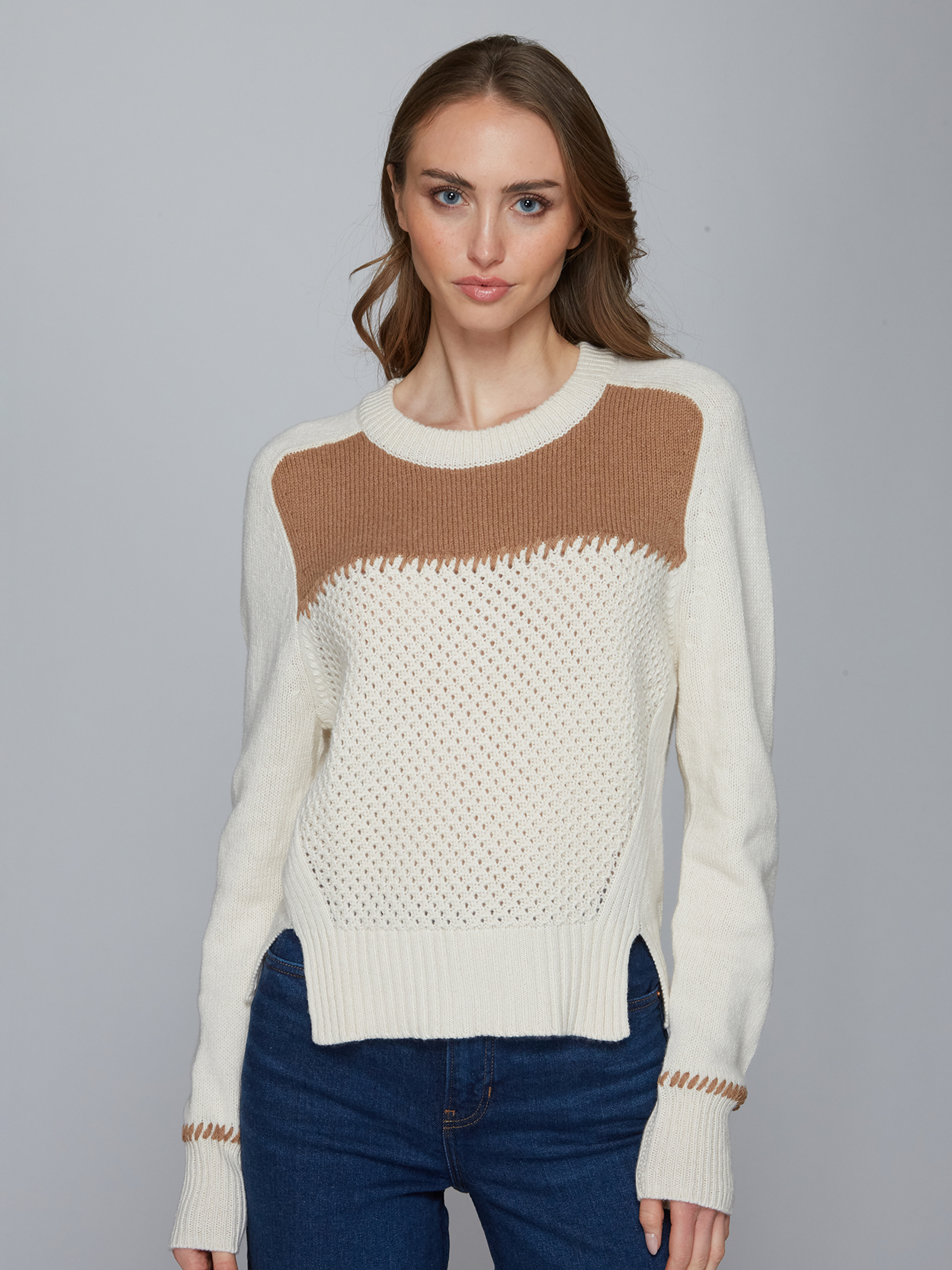 Boxy Crew w/ Contrast Yoke & Whipstitching in Vanilla/Camel | Autumn Cashmere | RCP14372