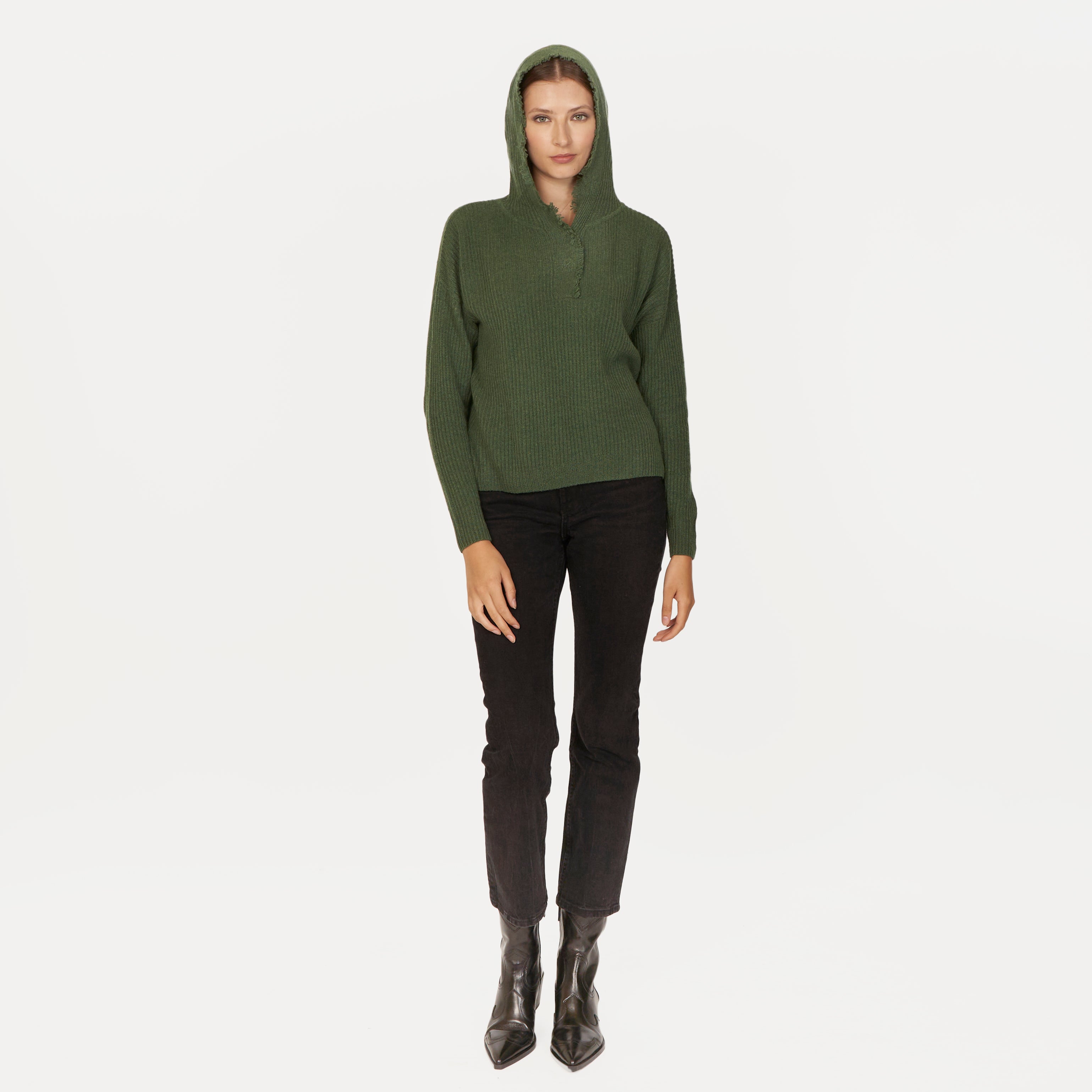 Boxy Shaker Fringe Hoodie W/ Snaps in Pickle