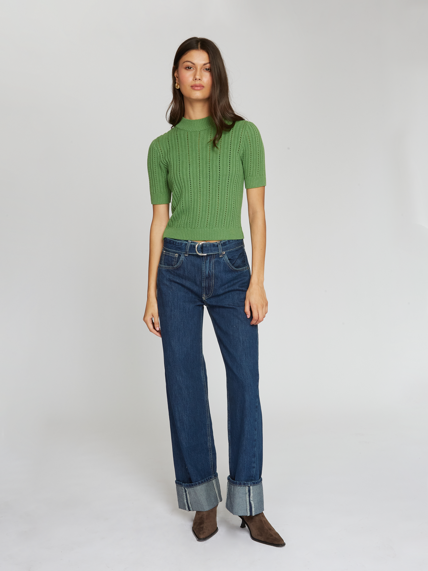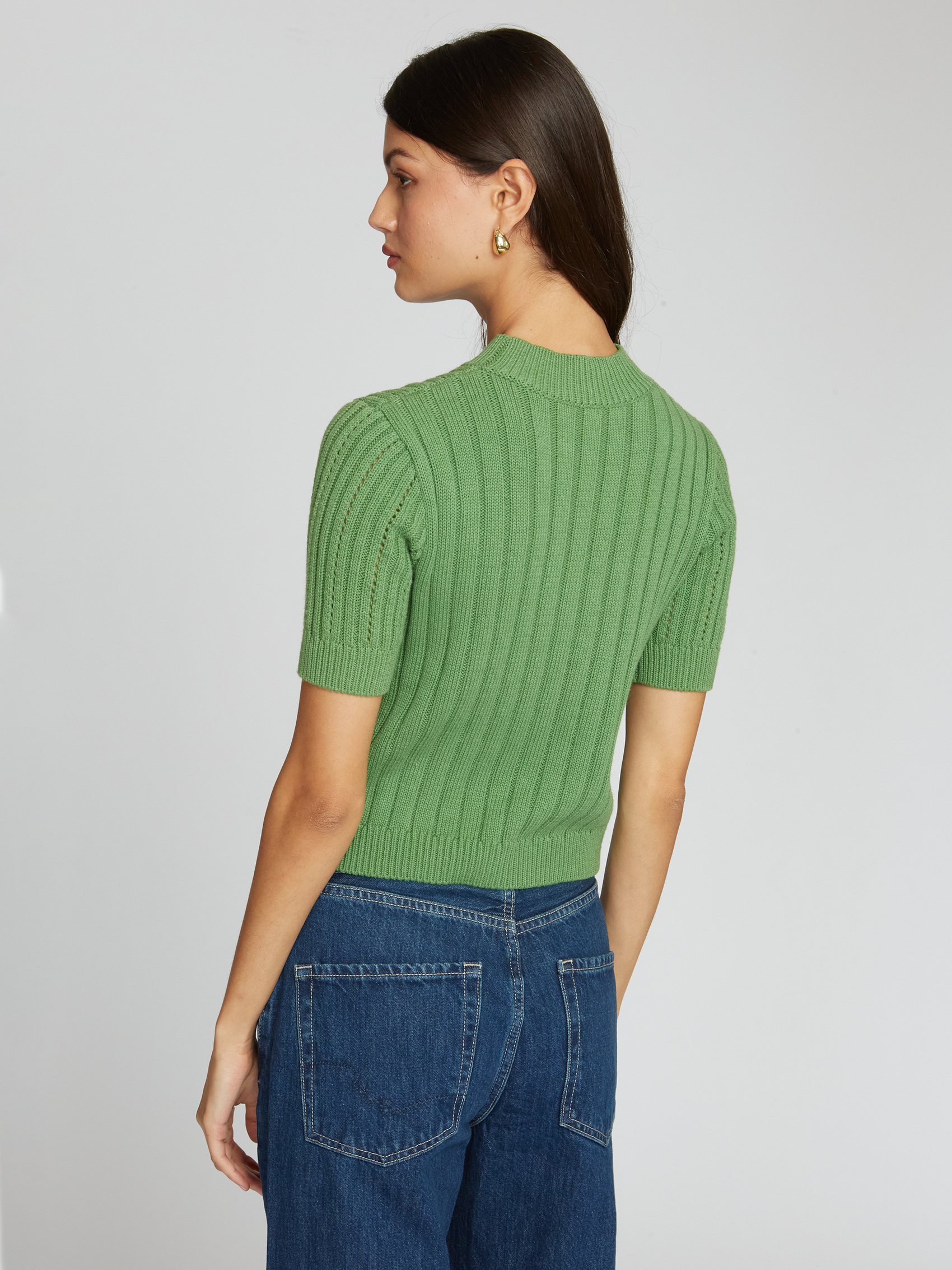 Cropped Rib/Pointelle S/S Mock in Cactus