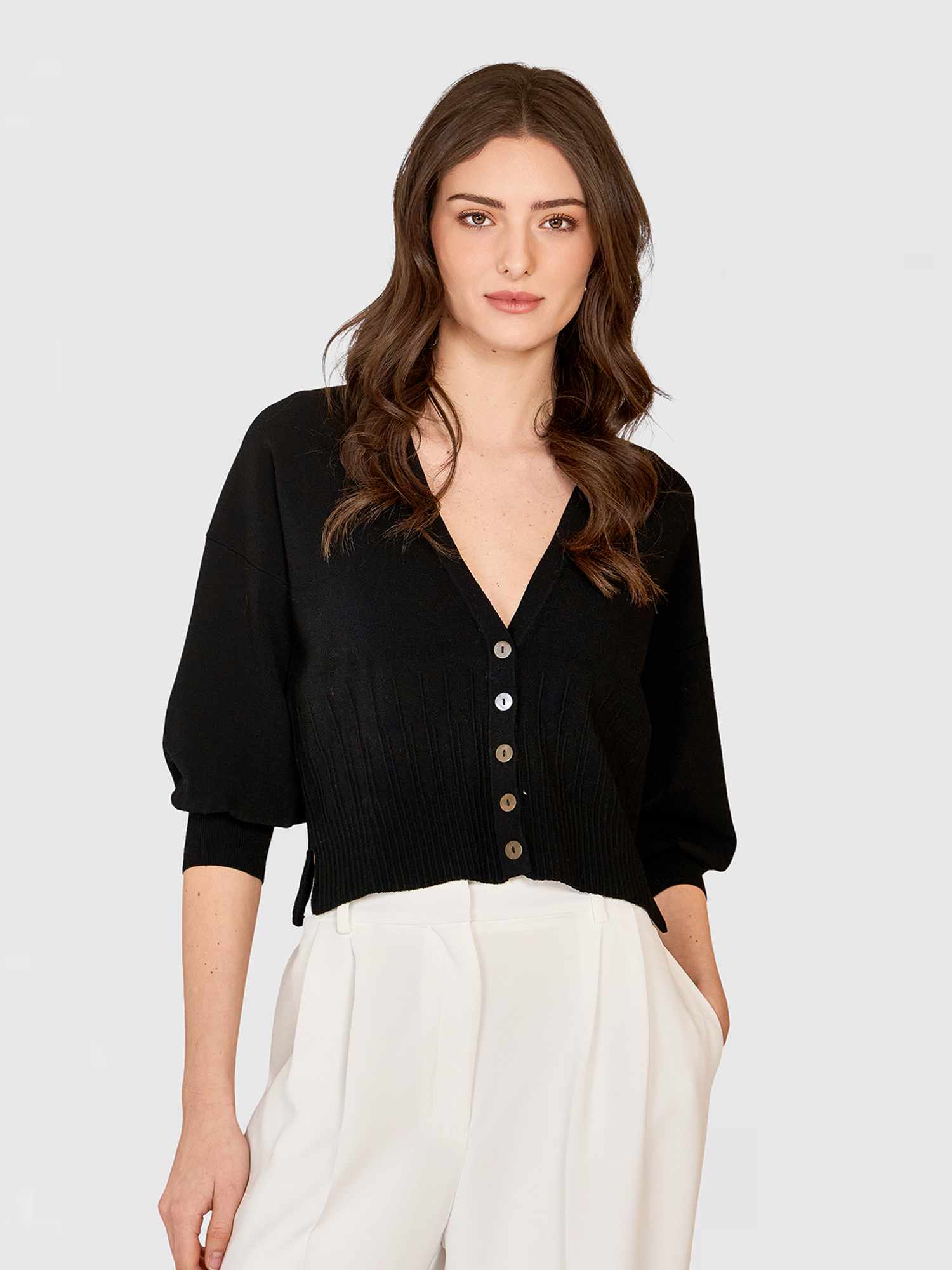 Drop Shoulder Cardigan W/ Ottoman Ribs in Black