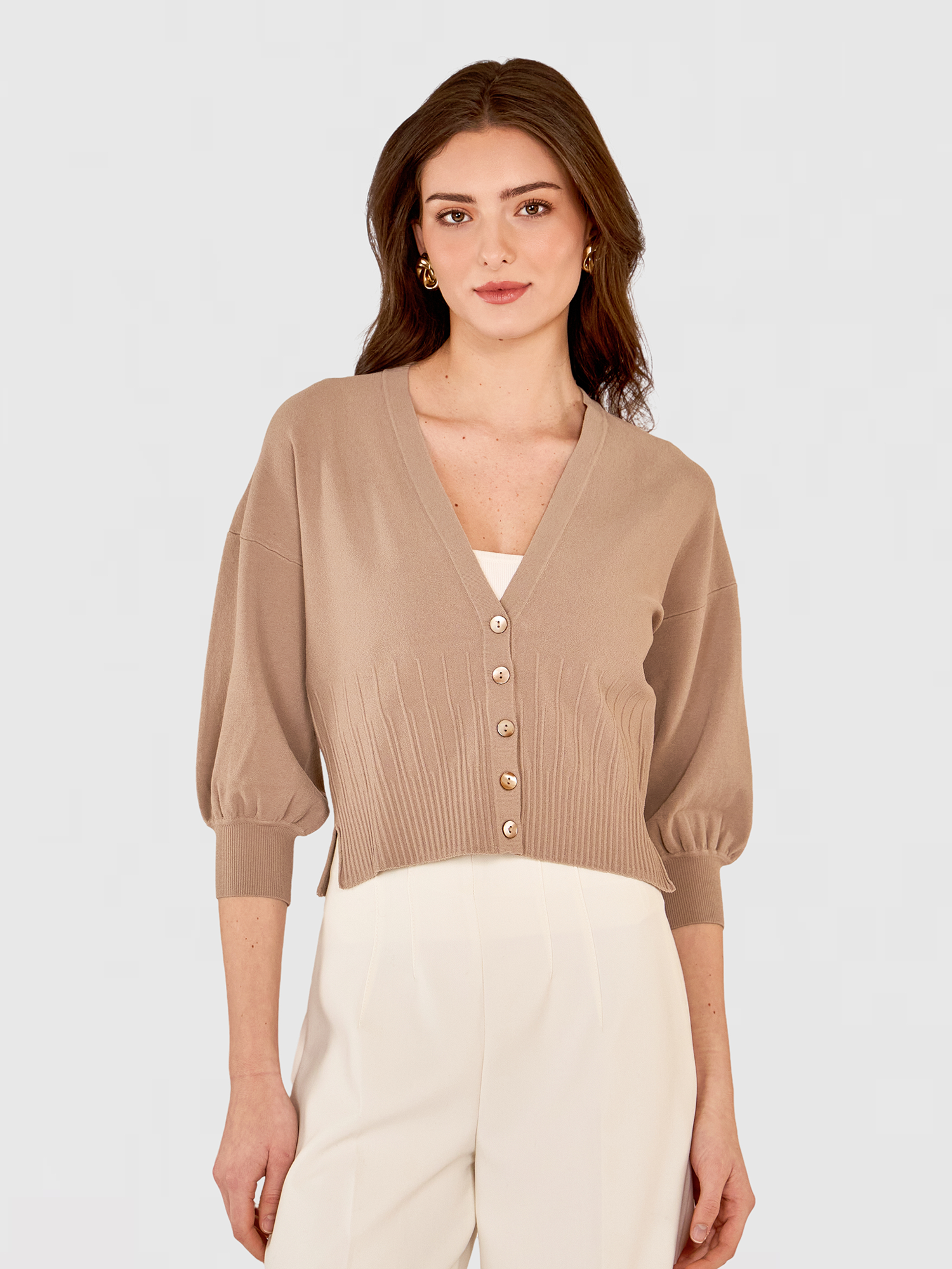 Drop Shoulder Cardigan W/ Ottoman Ribs in Mushroom
