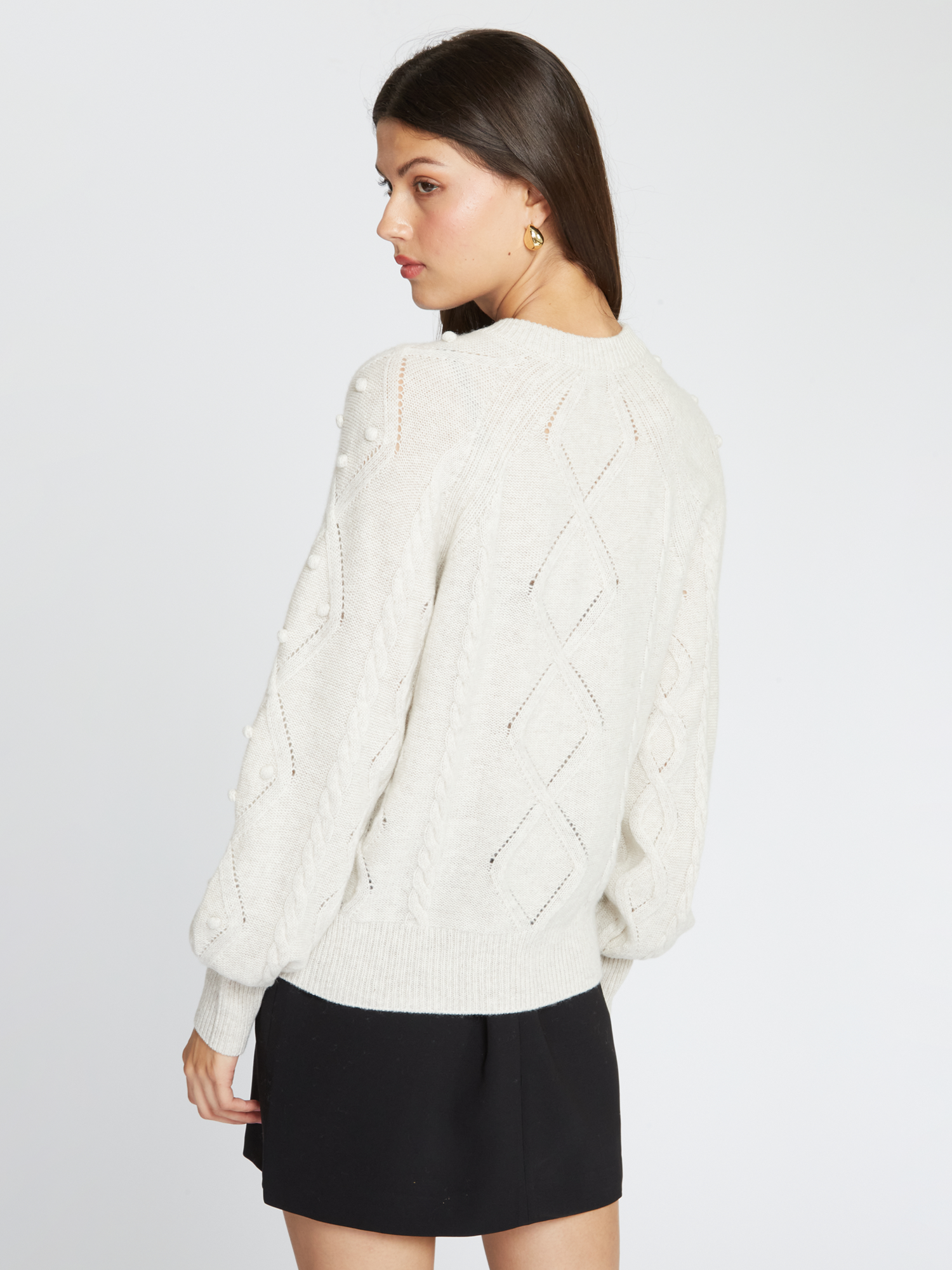Our crew features a fringed cable with popcorn details. Made of 100% cashmere.