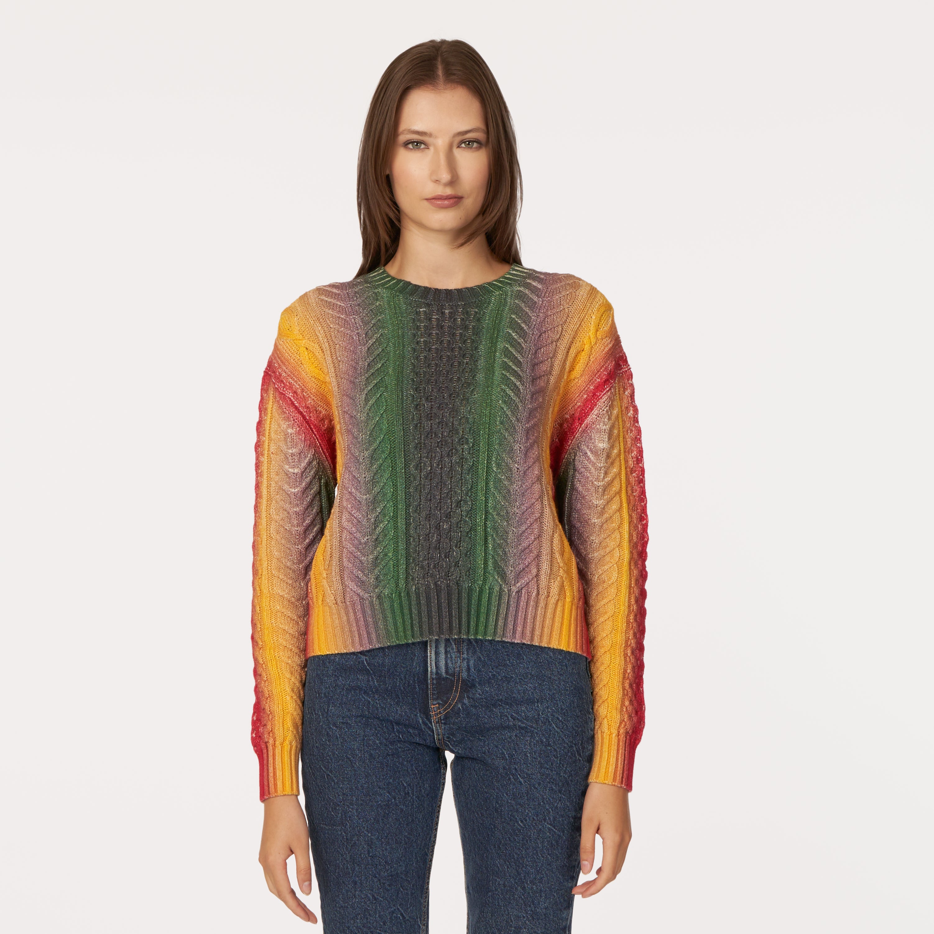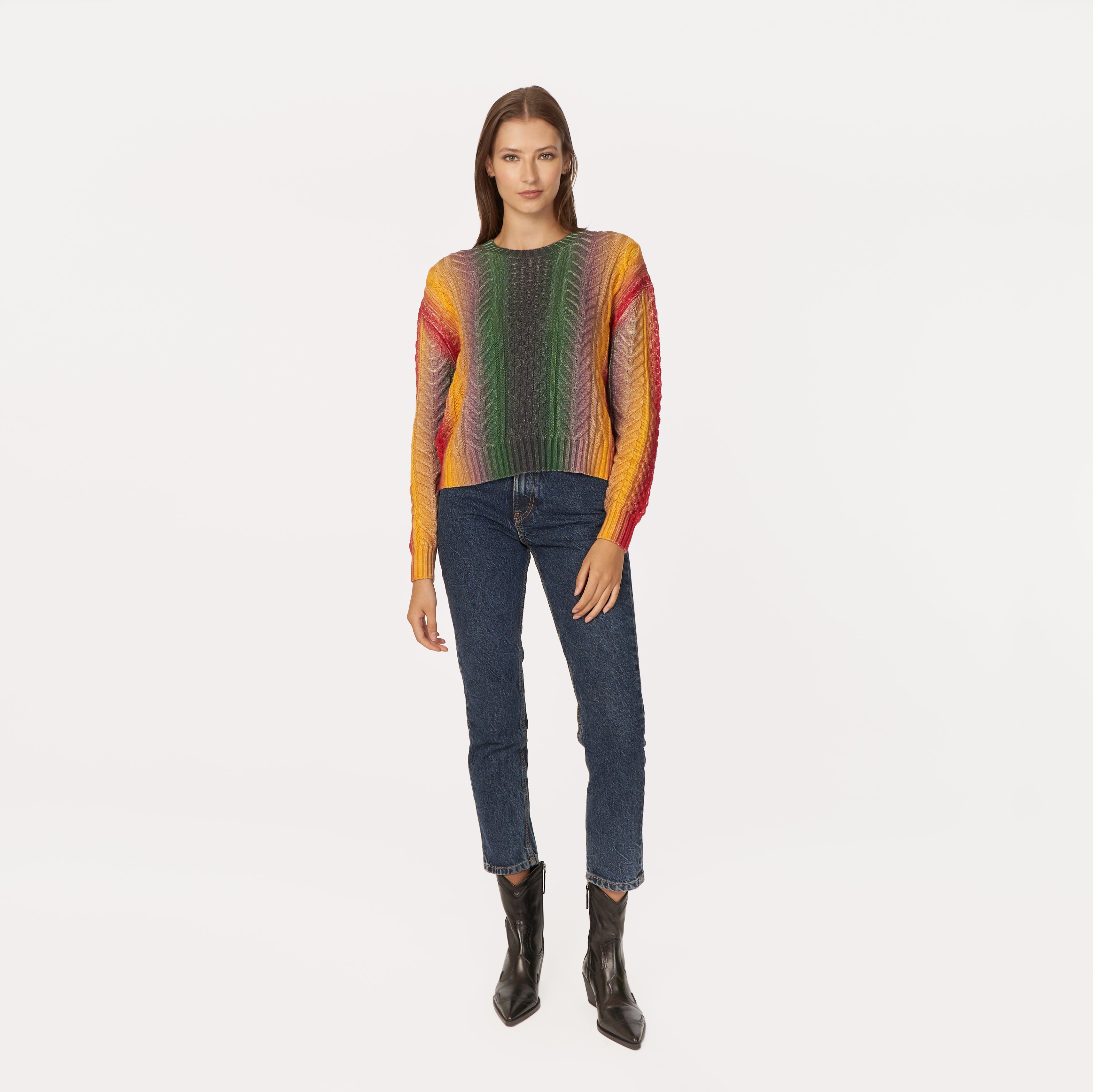 Gradient Stripe Cabled Crew in Bright