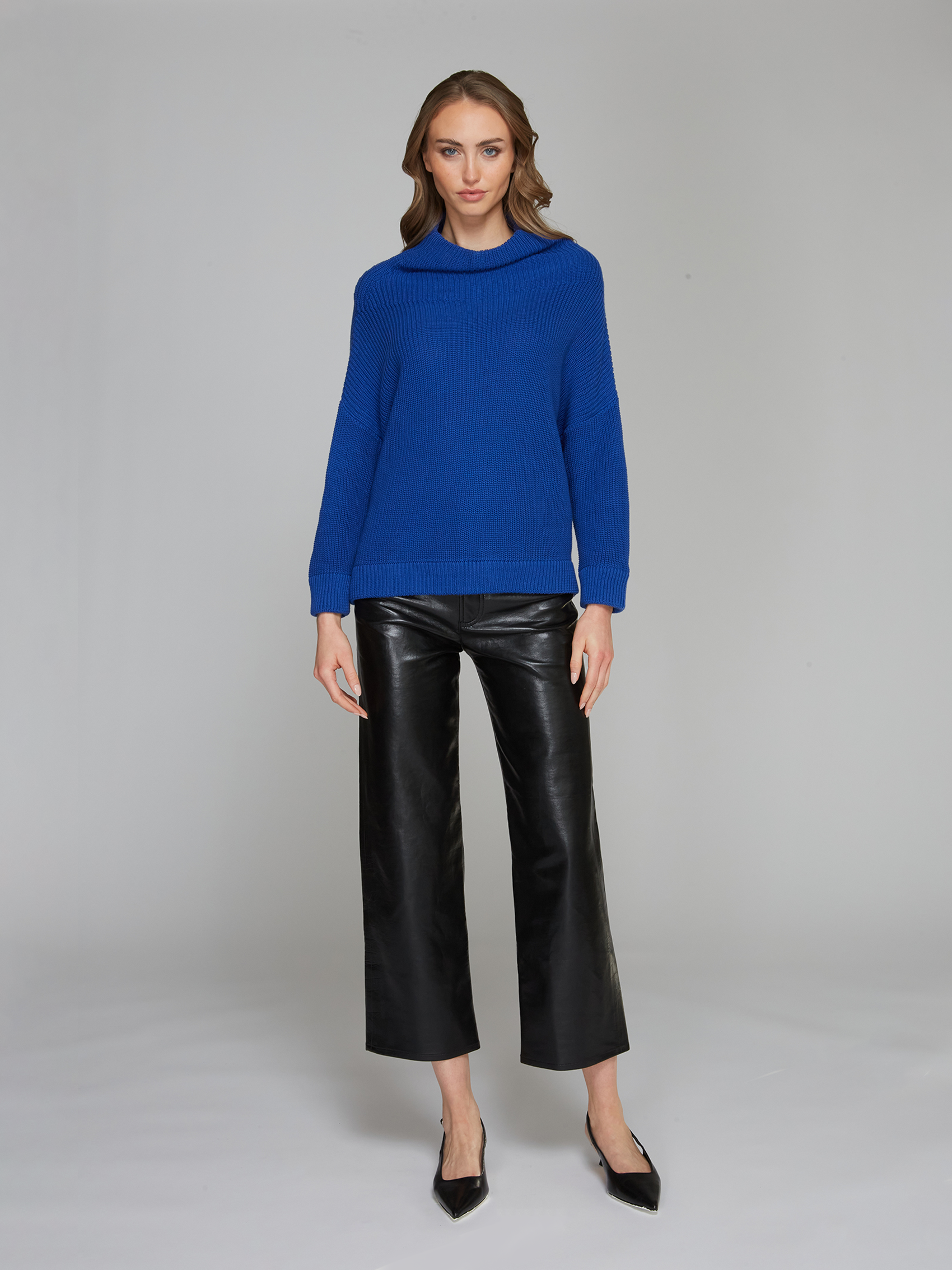 Half Cardigan Stitch Funnel Neck in Lapis