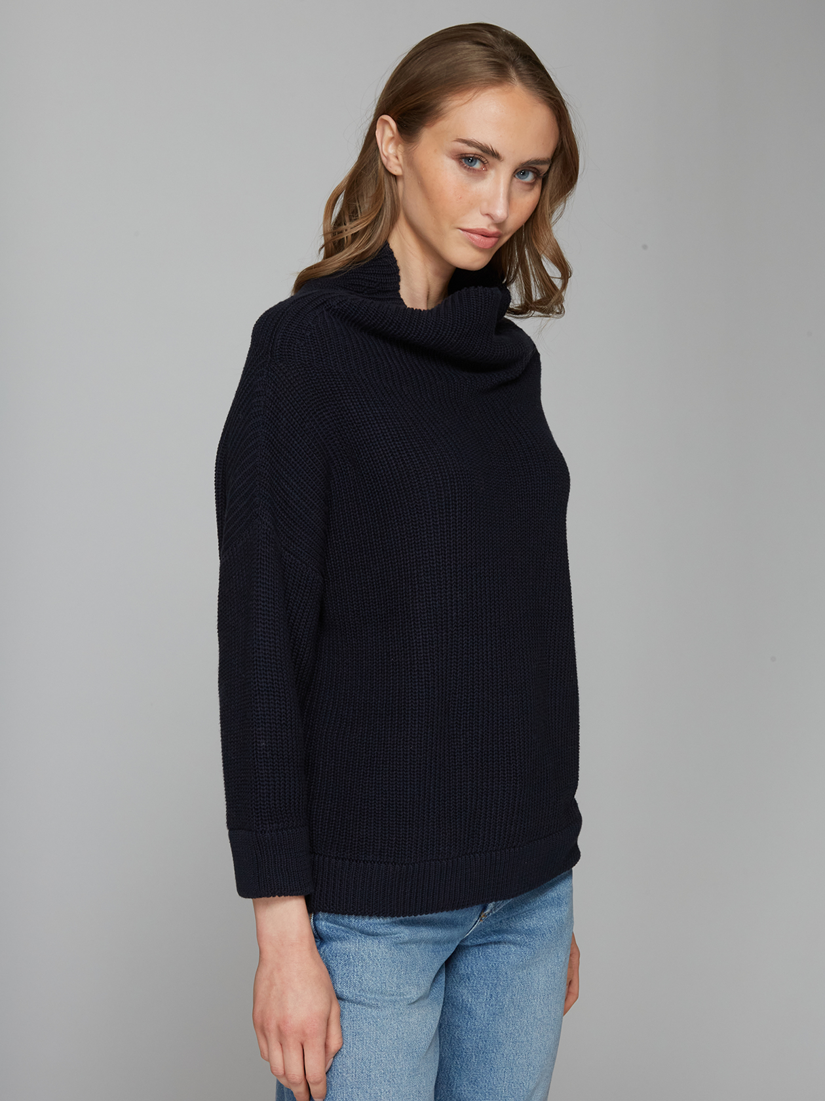 Made from pure cotton, our sweater is a contemporary must-have for chilly days. The funnel neck sweater is ribbed-knitted that is designed for a slightly relaxed fix.