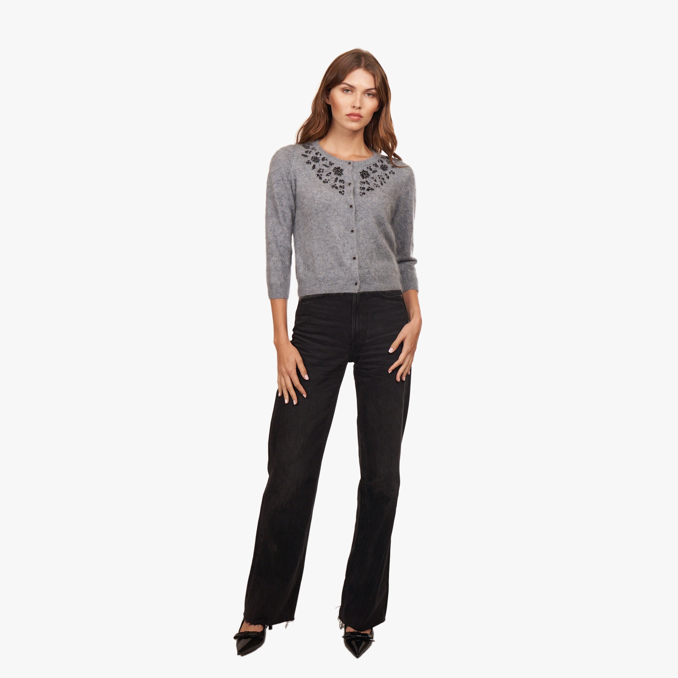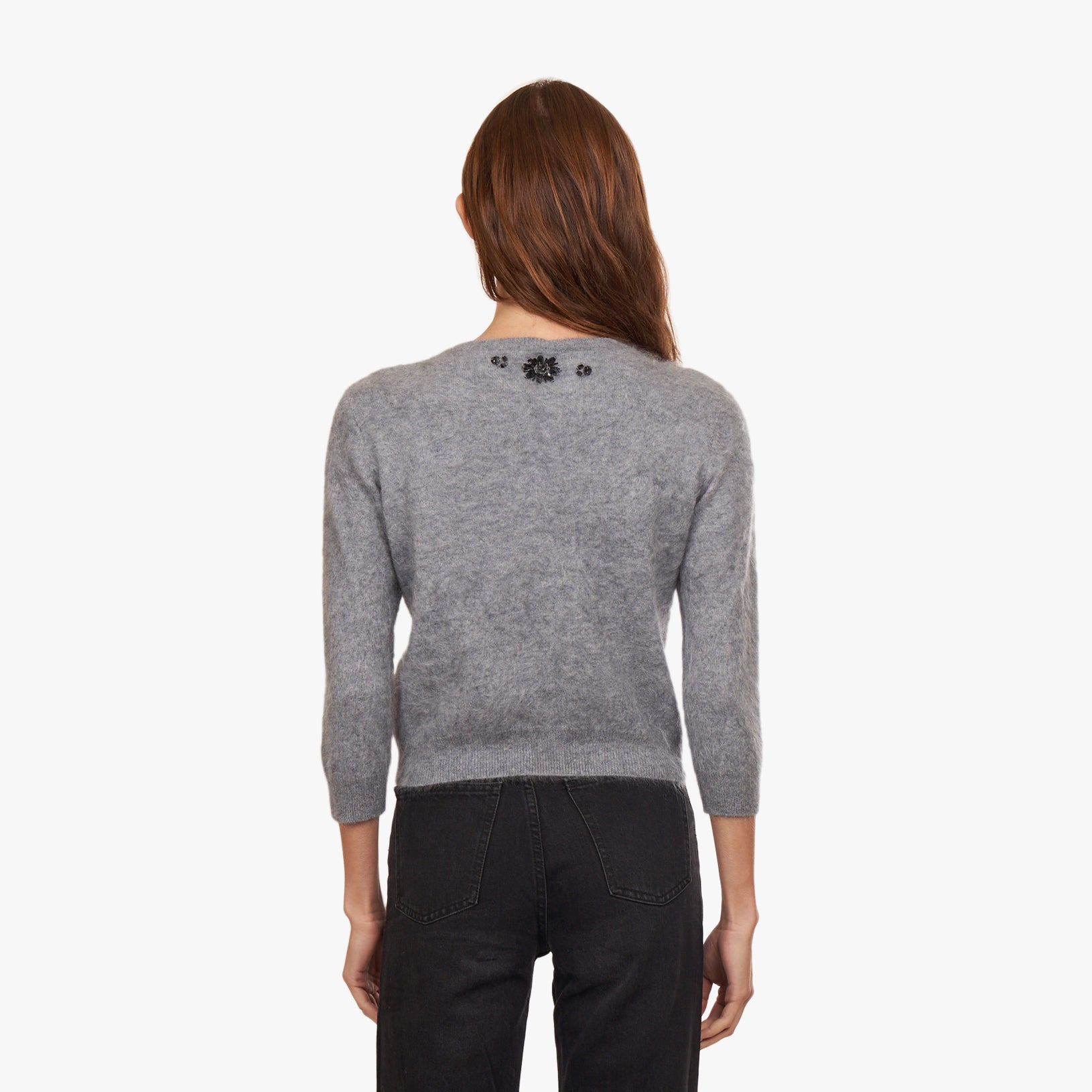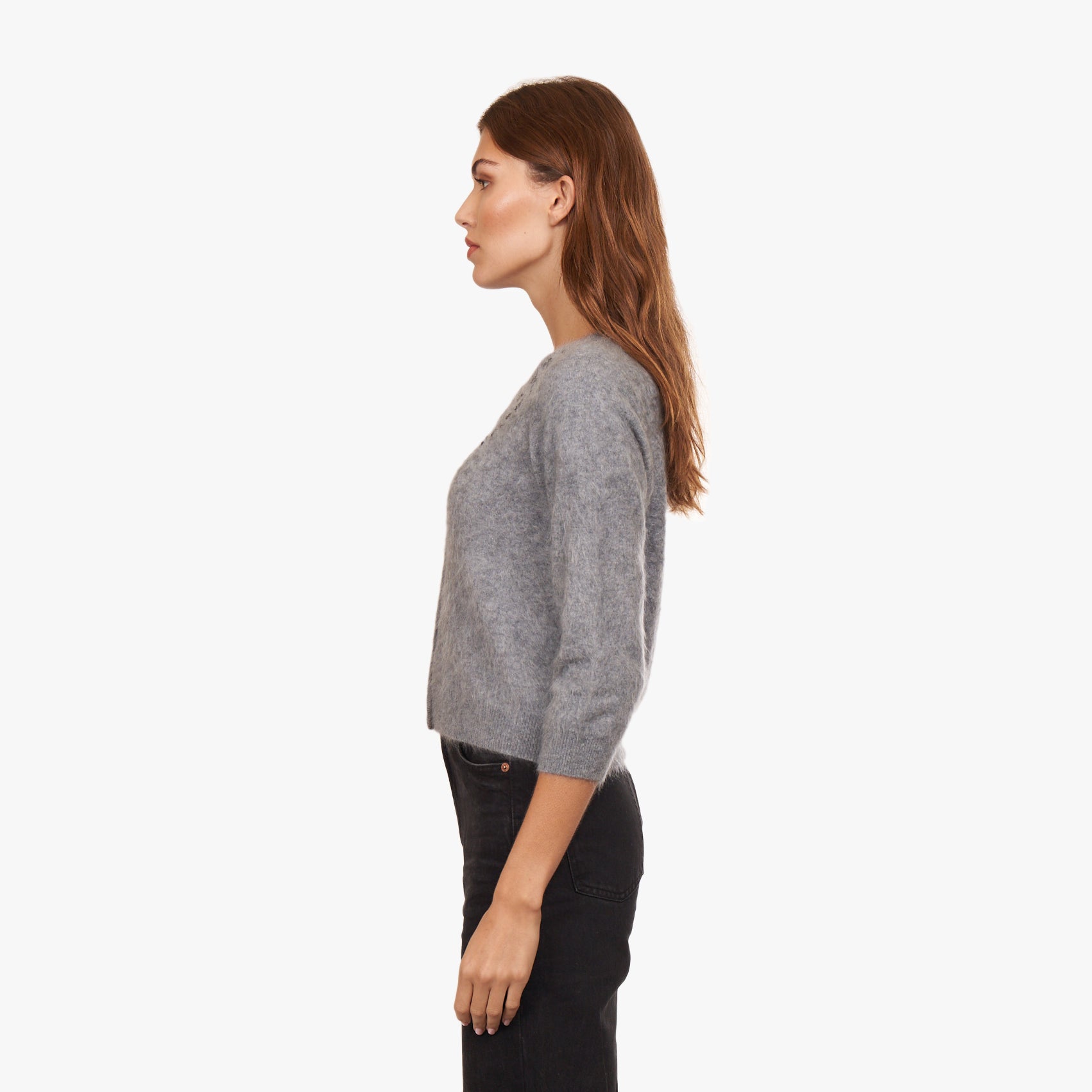 Hand Beaded Brushed Cashmere Baby Cardigan in Feather