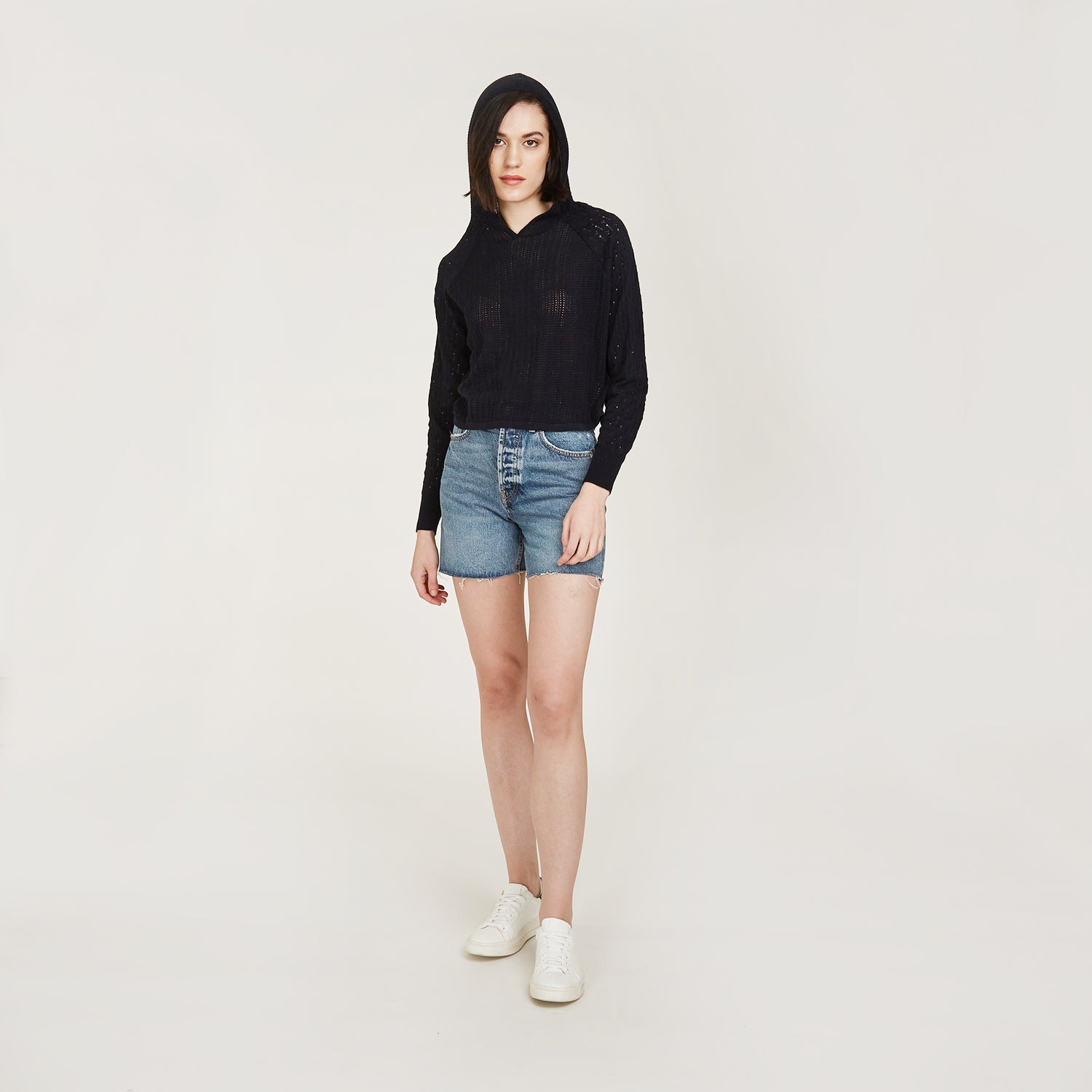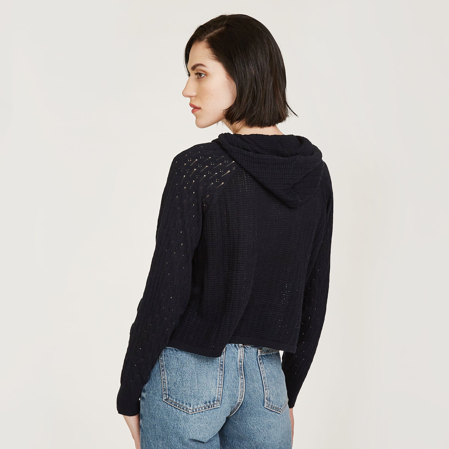 Mixed Stitch Hoodie in Navy Blue