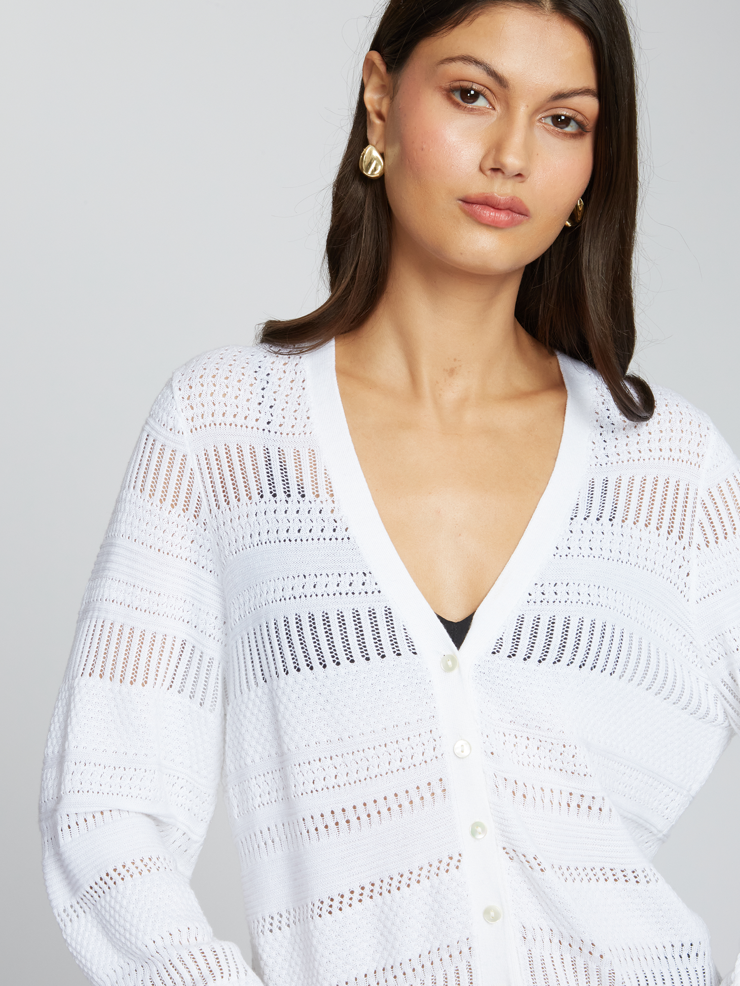 Our cardigan is pointelle-knitted from pure Italian cotton. Defined by a cropped fit, it has puff sleeves with ribbed details on the hem.