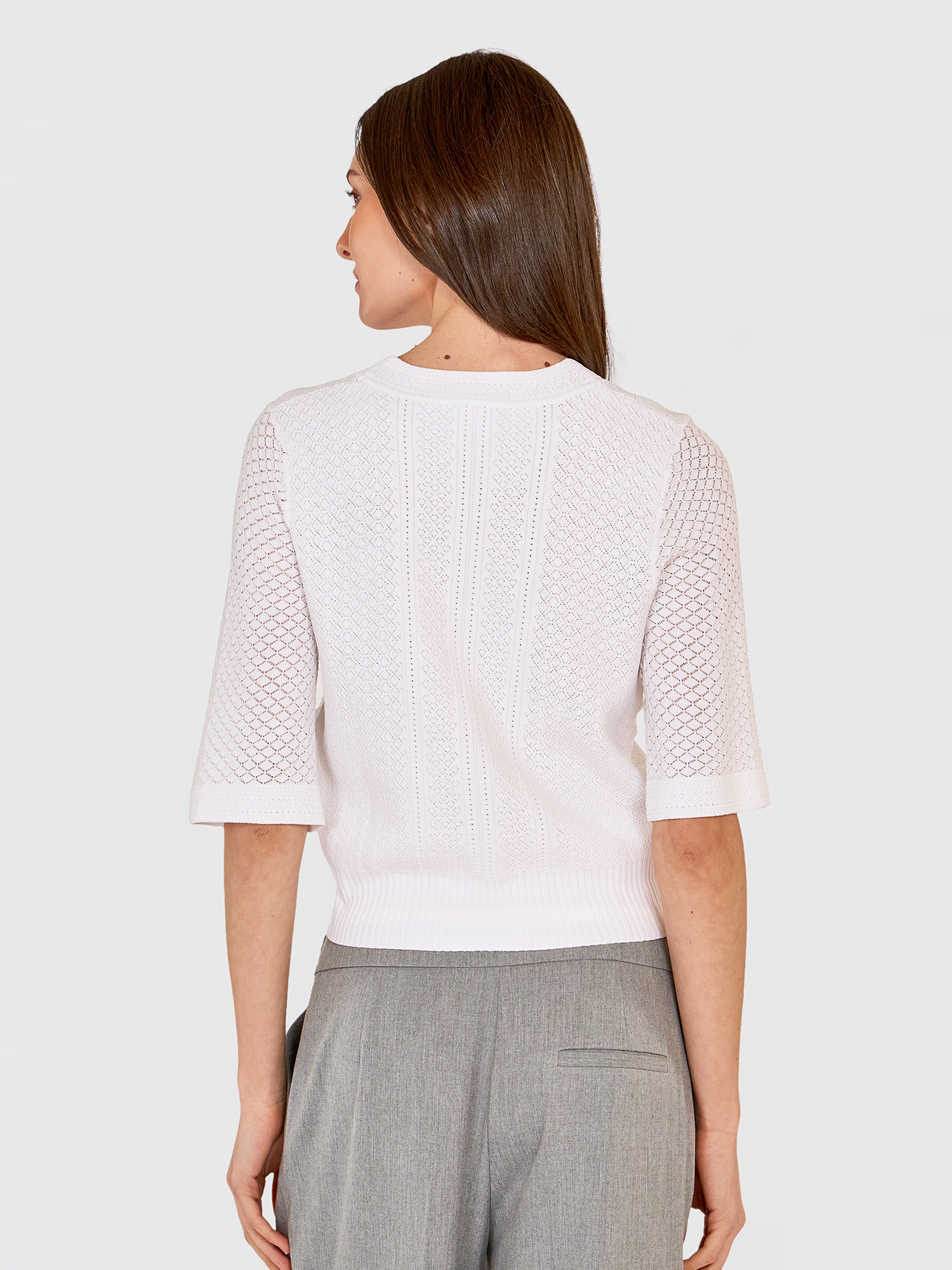Pointelle V-Neck Cardigan in White