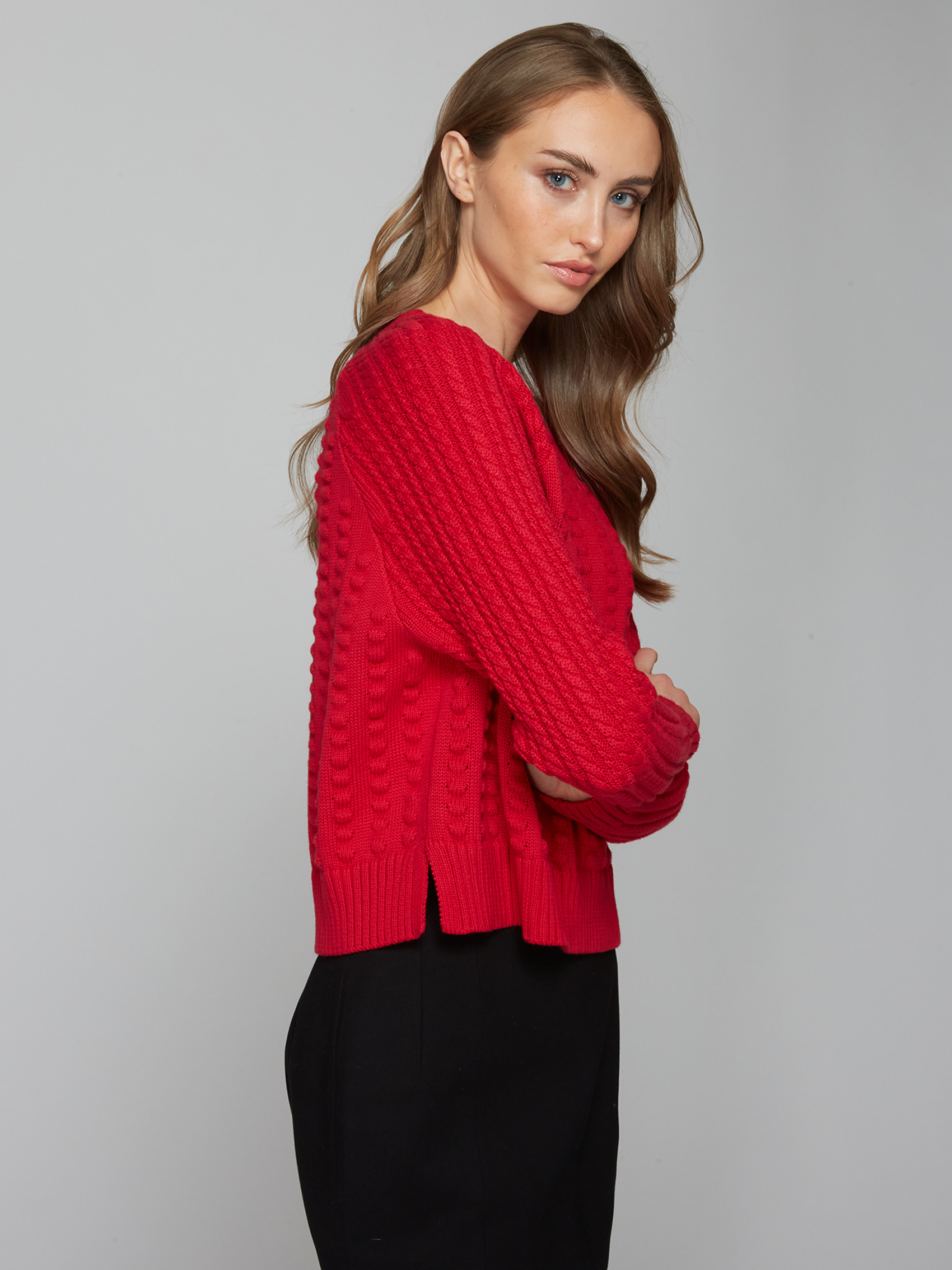 Popcorn Raglan Crew in Scarlet | Autumn Cashmere | N14501