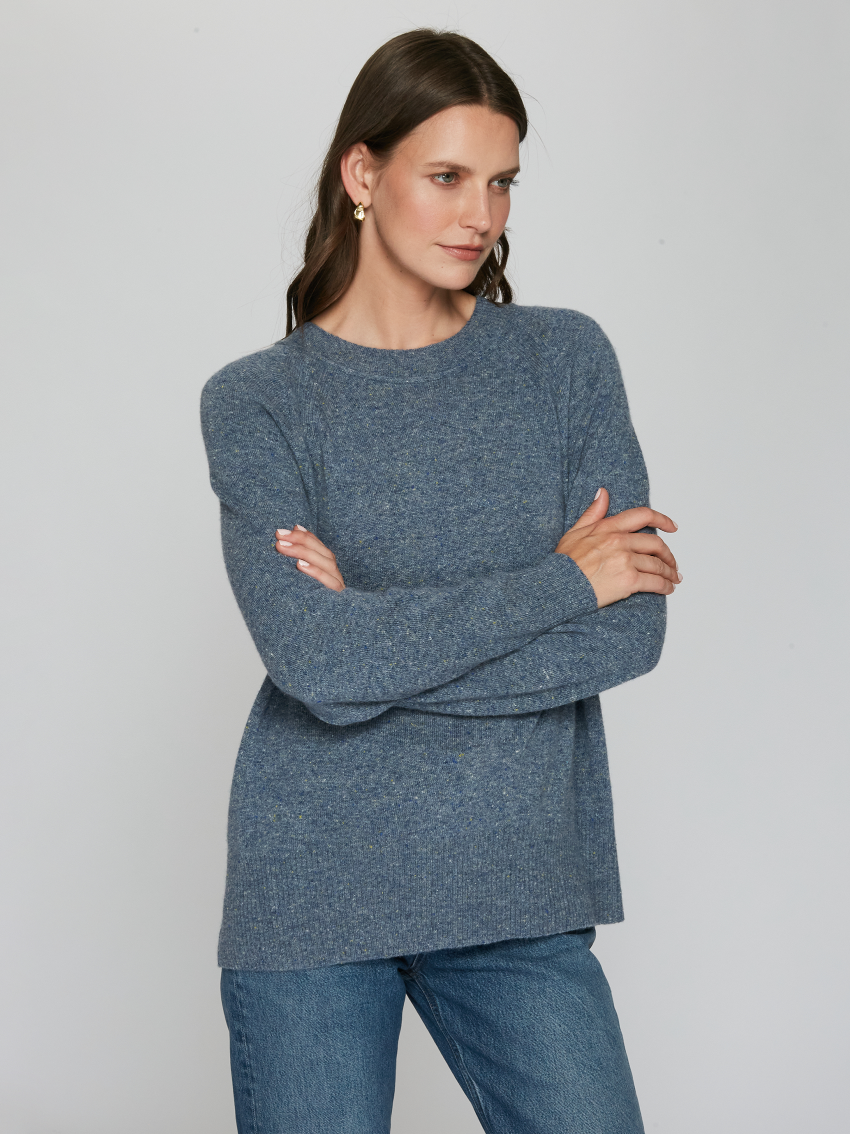 Relaxed Fit Raglan Crew W/ Rib Detail in Riverwash