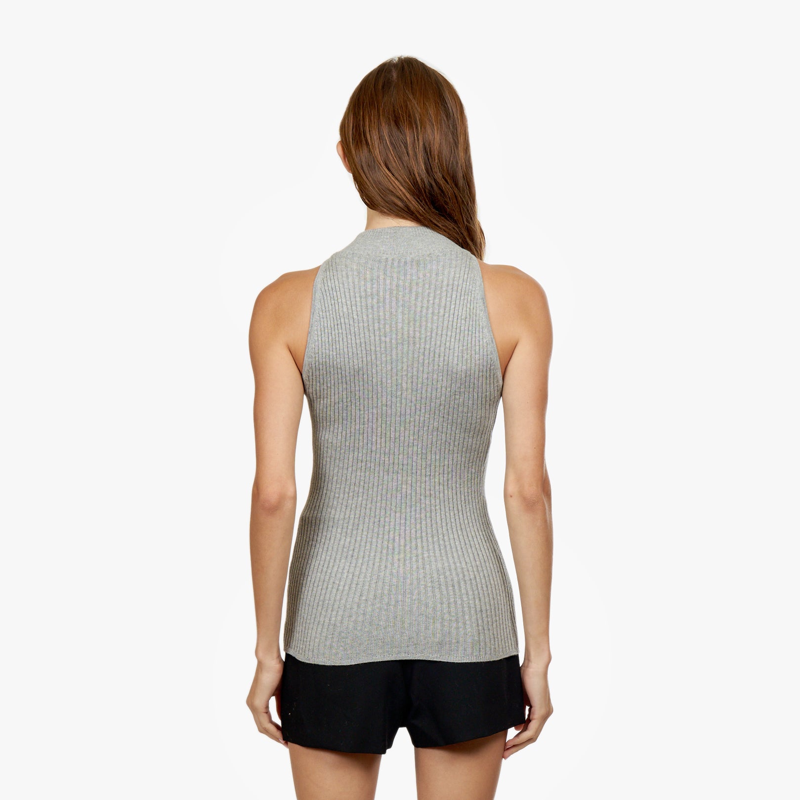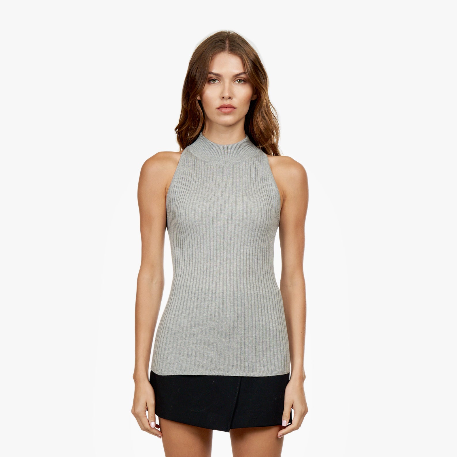 This halter is crafted using lightweight knit fabric, featuring a mock neck and ribbed detailing. Designed to fit slim, this piece is crafted with stretchy material, and fits true to size.