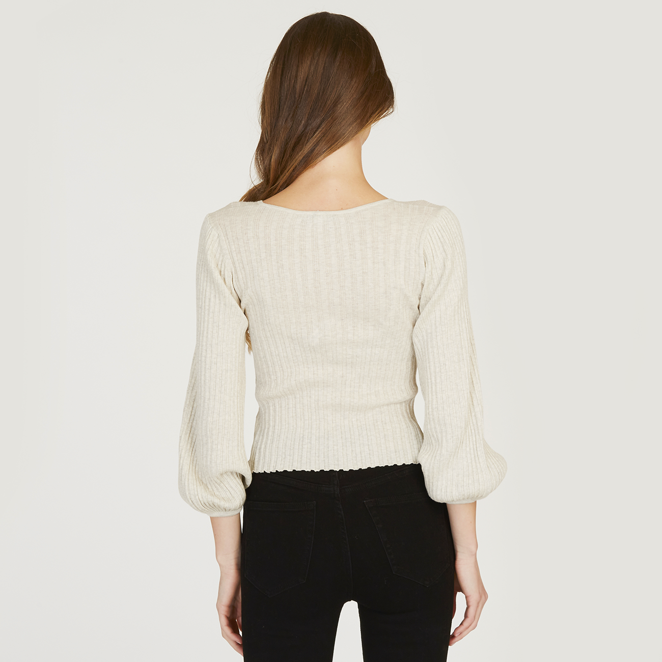 Rib Puff Sleeve Multi Button Cardigan