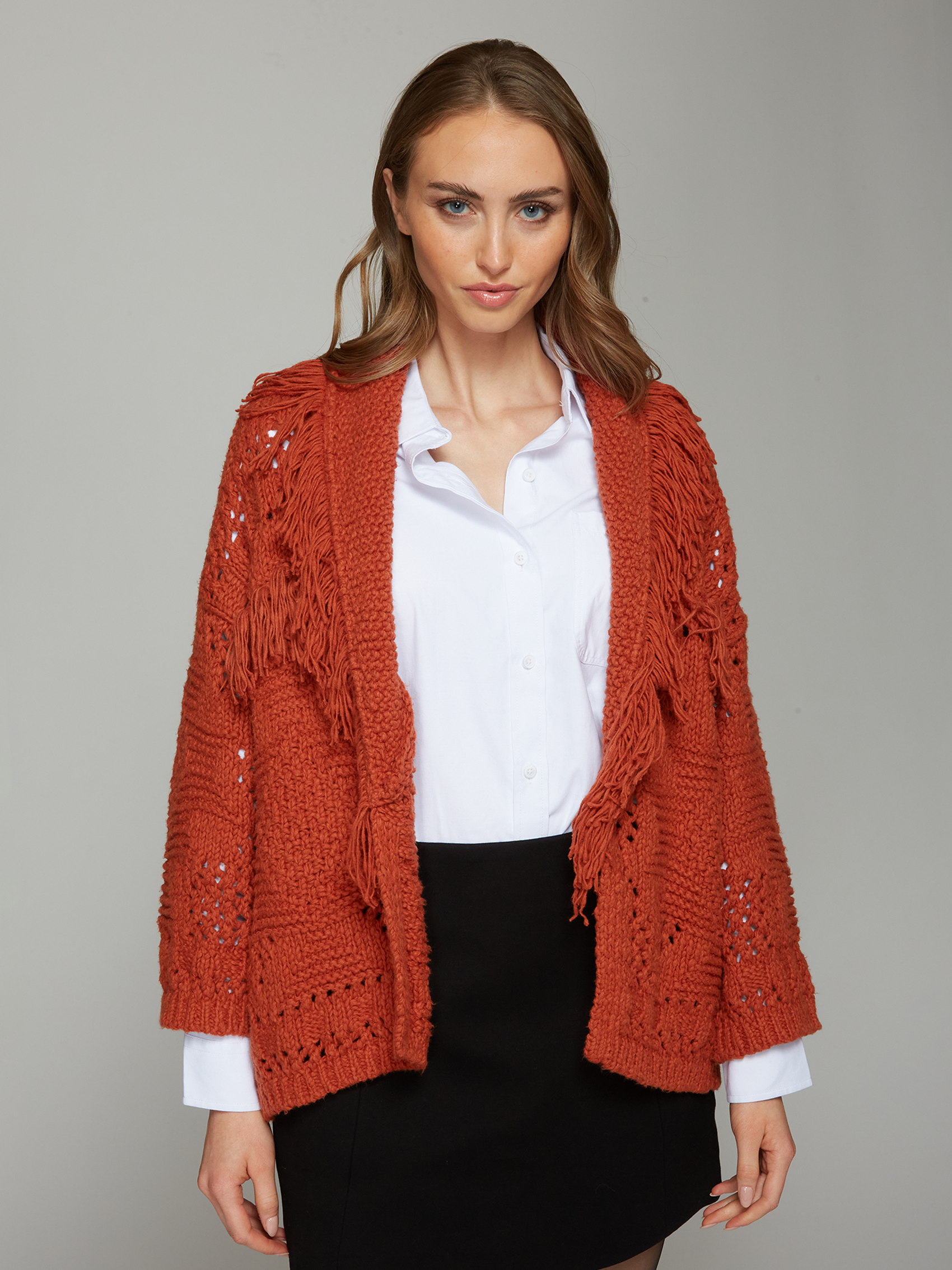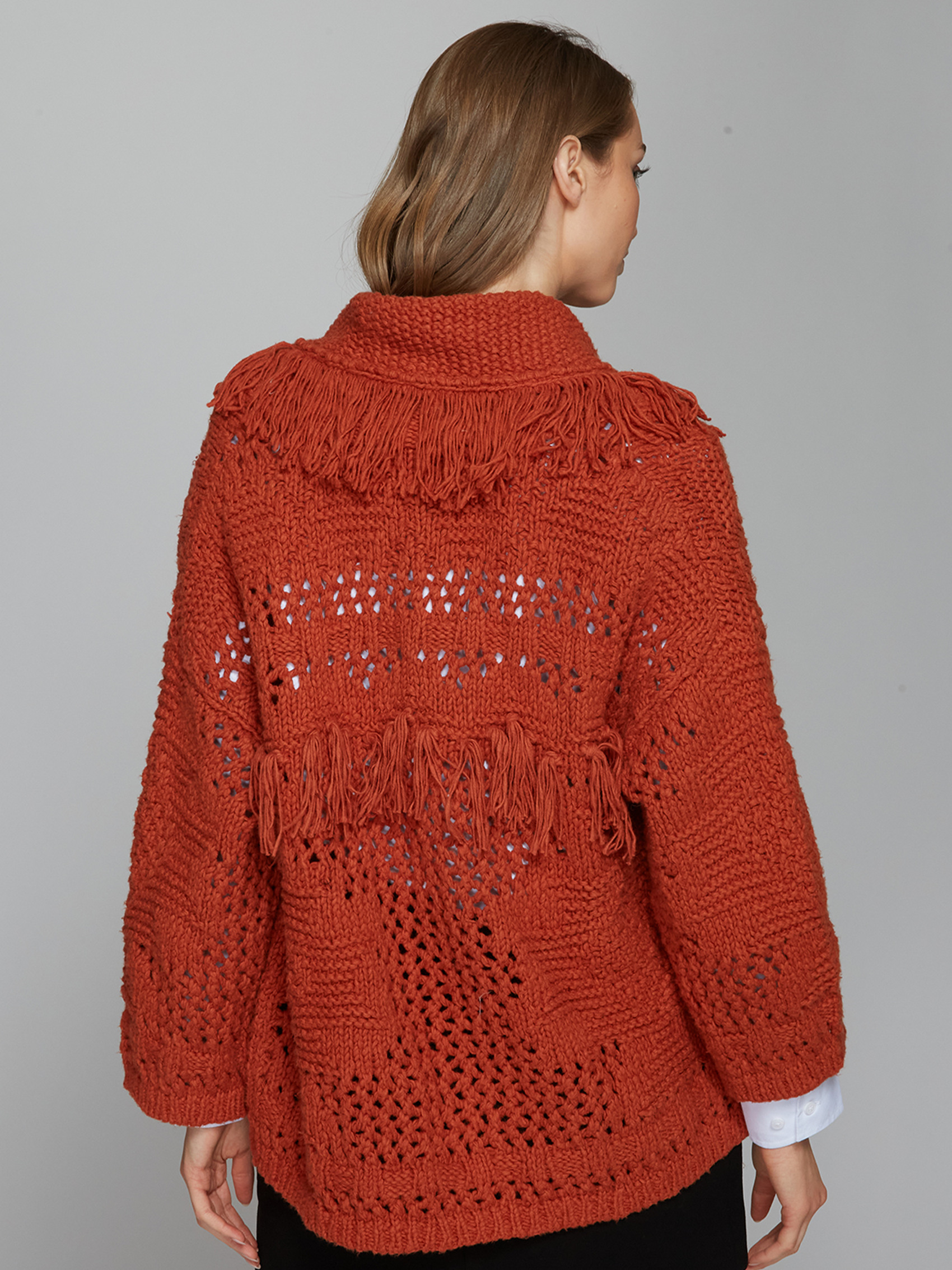 Southwest Fringed Cotton Shawl Collar Throw in Persimmon