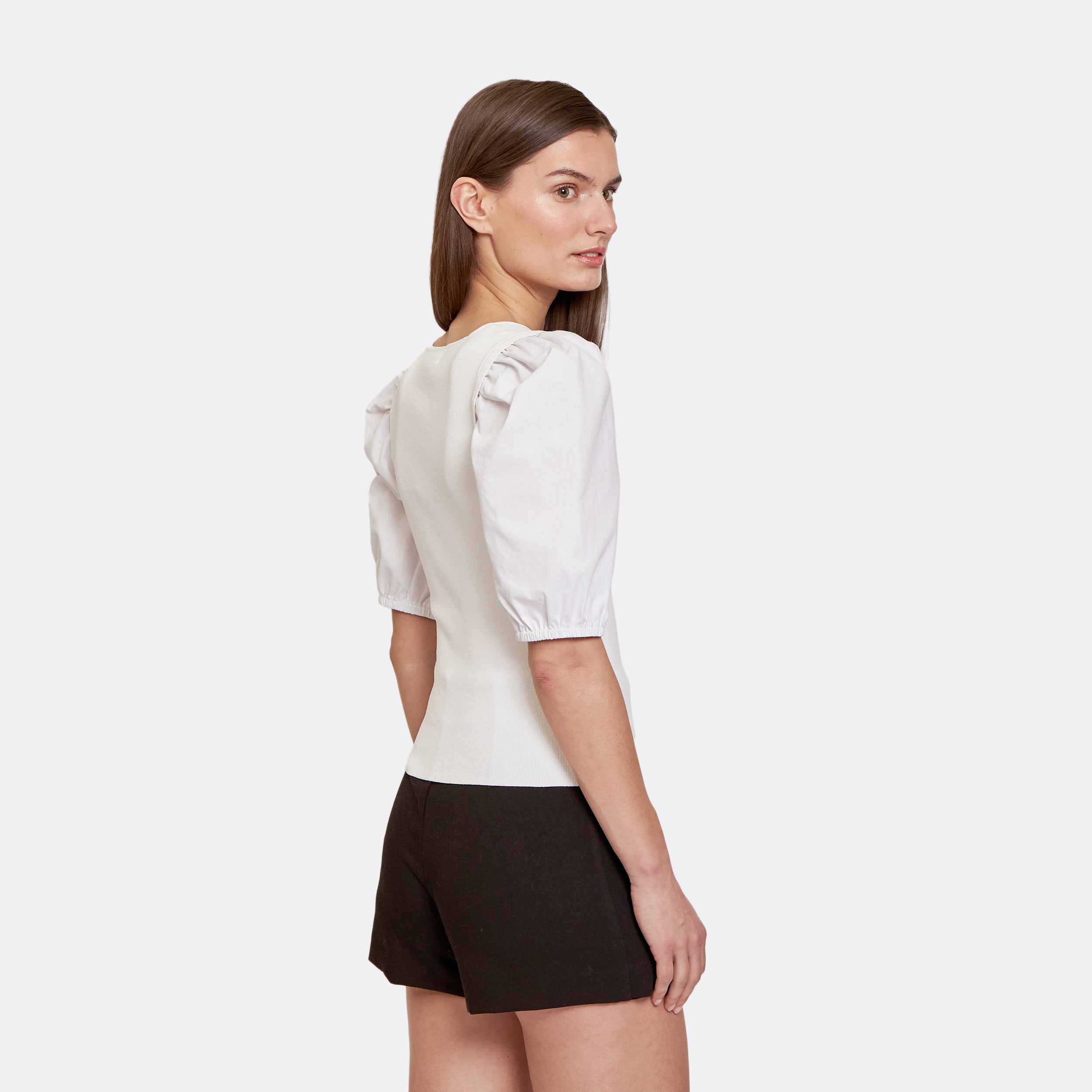 Square Neck W/ Poplin Puff Sleeve in White