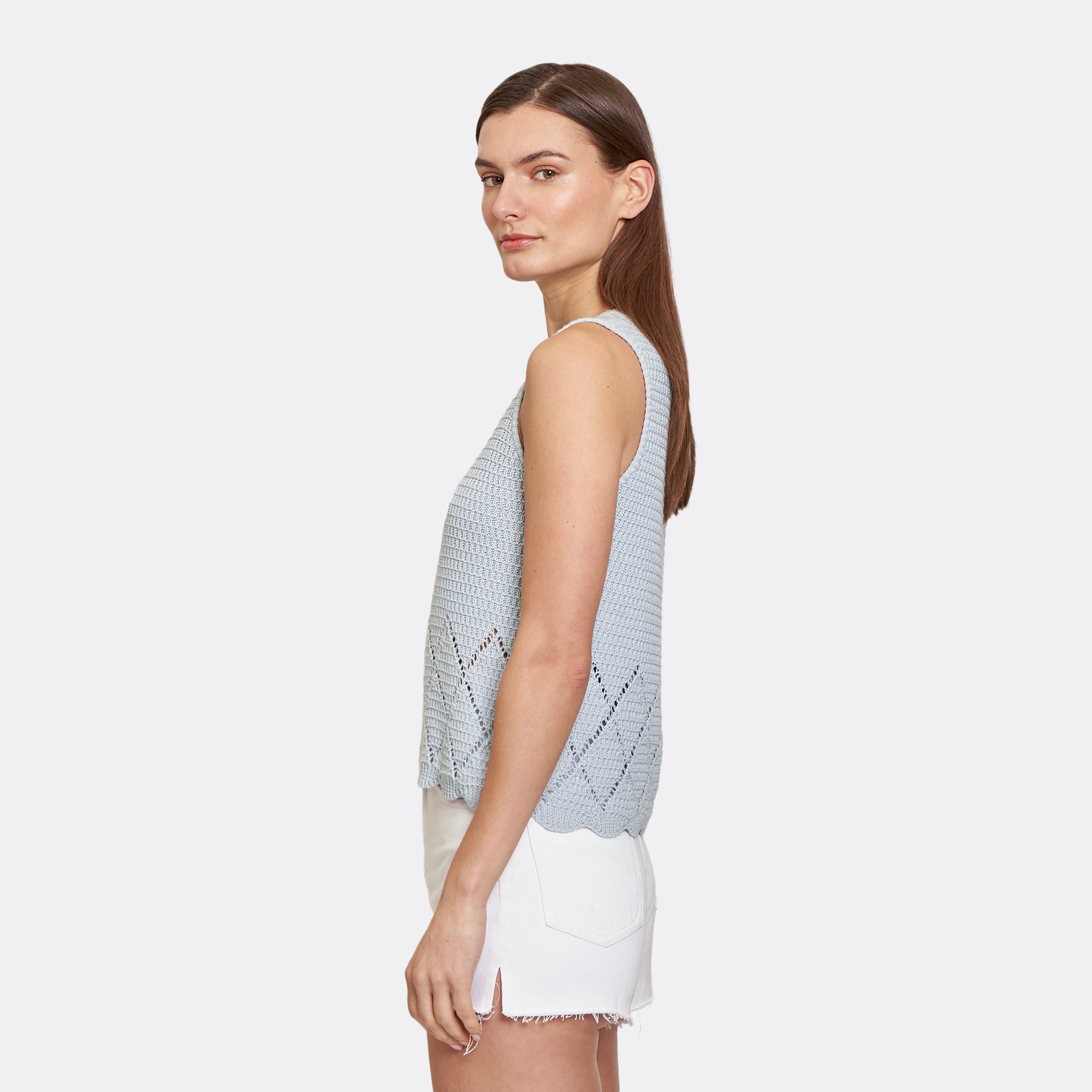 Texture Stitch Shell w/ Pointelle Diamond Border in Glacier