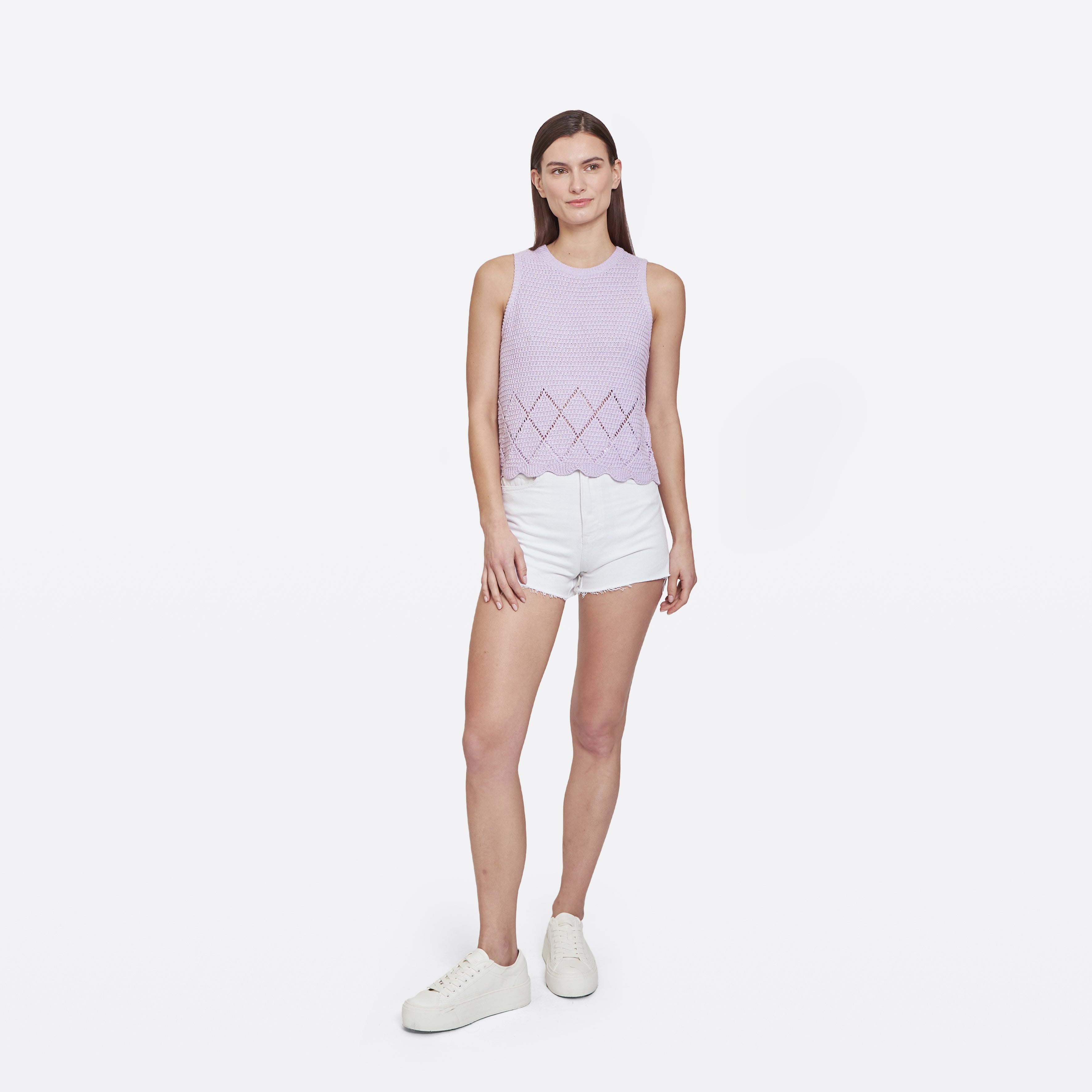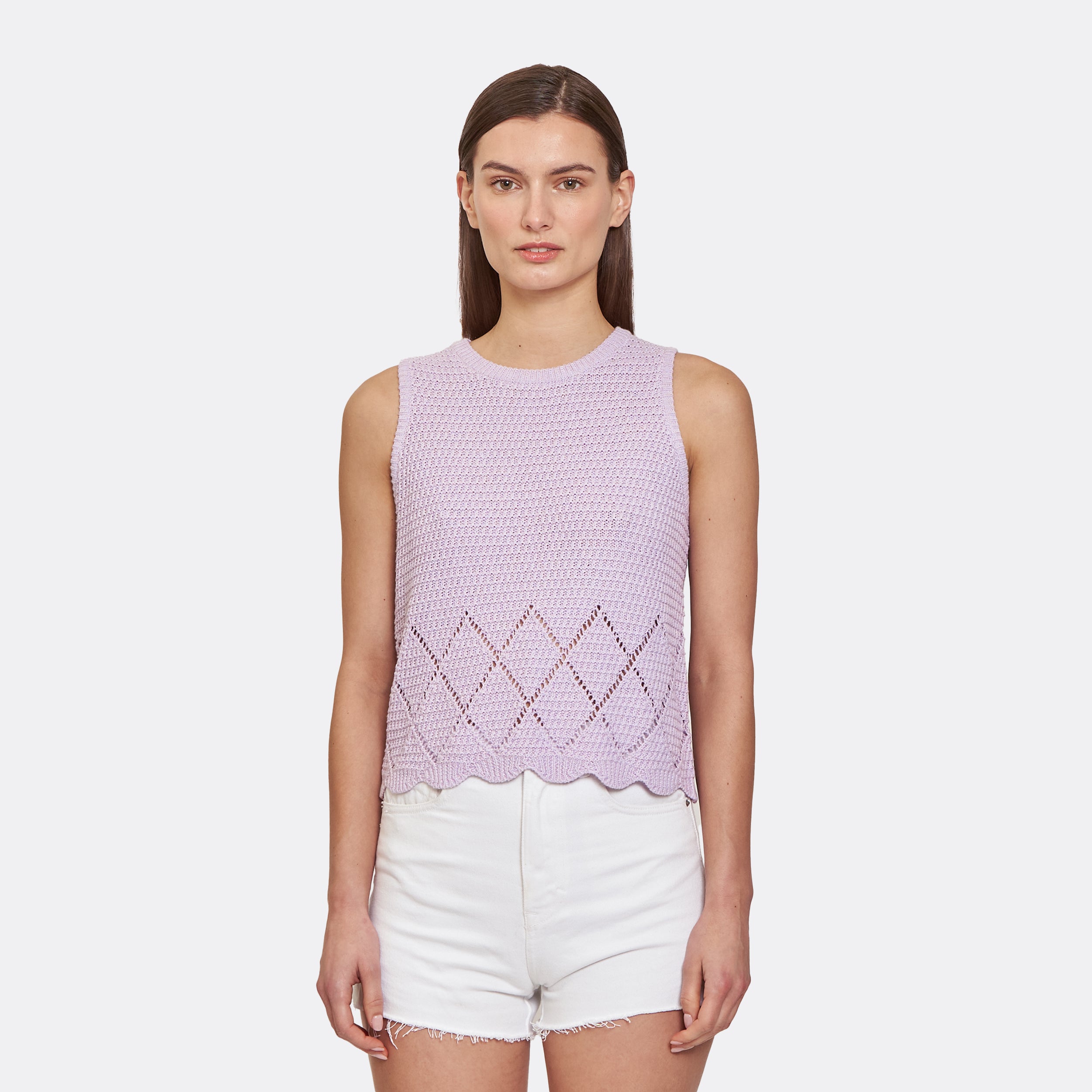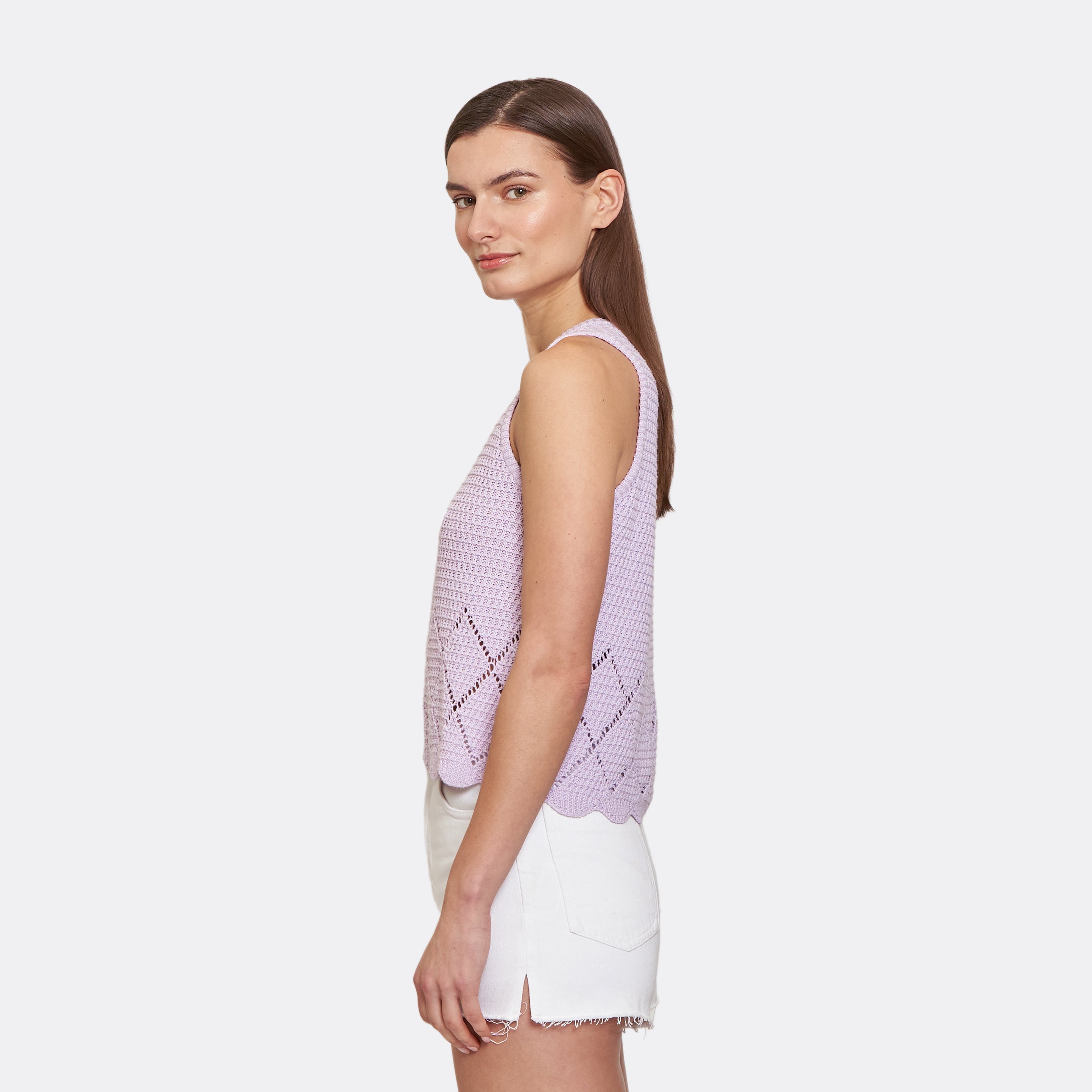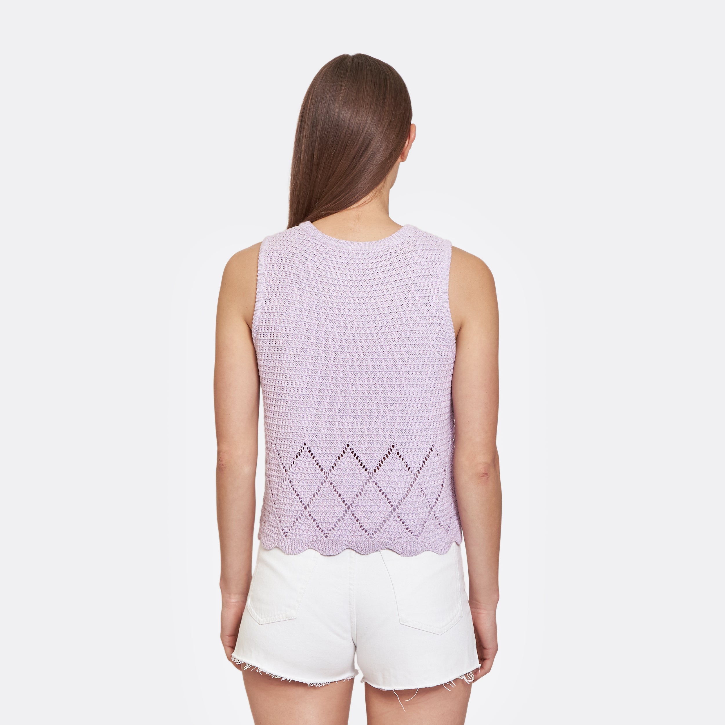 Texture Stitch Shell W/ Pointelle Diamond Border in Violet