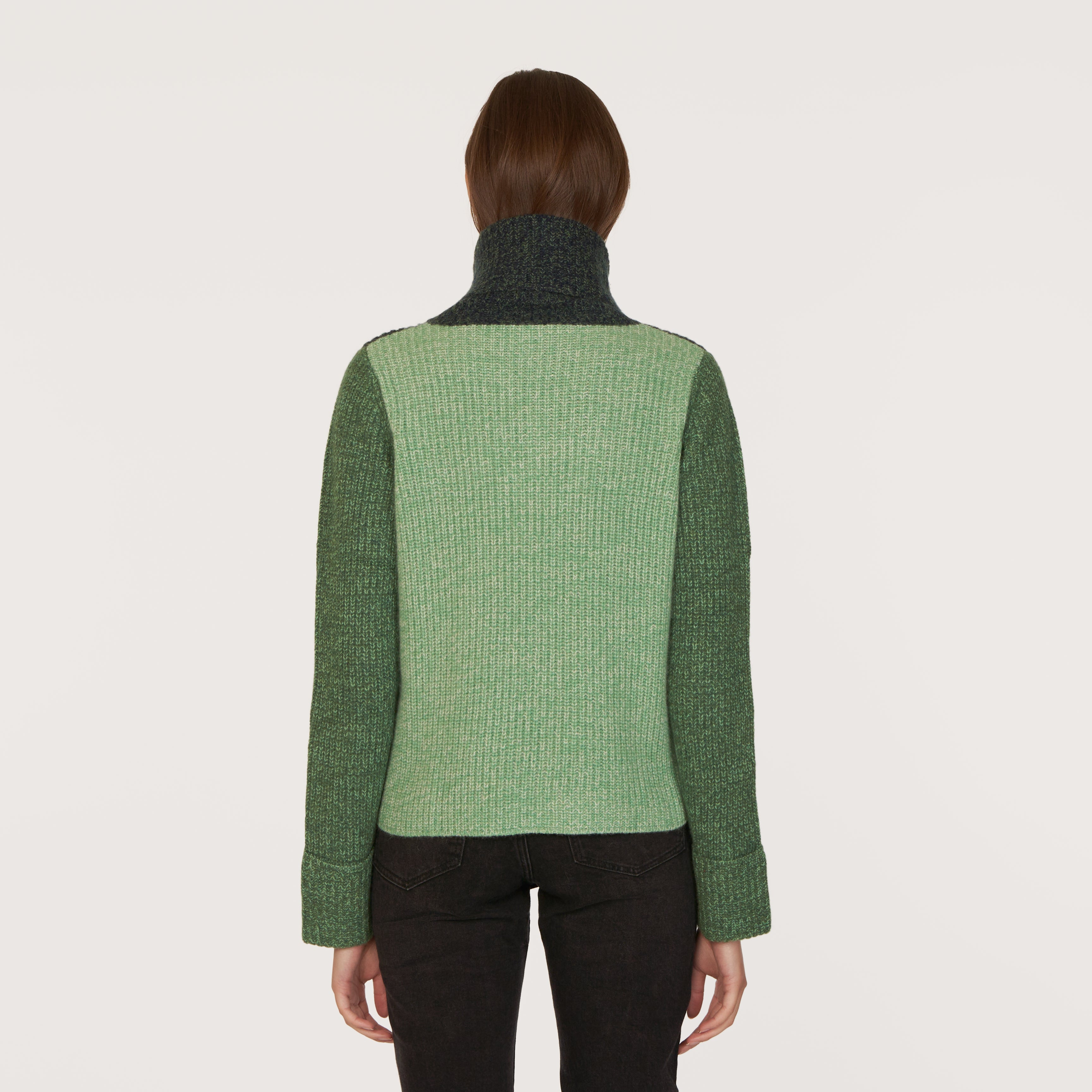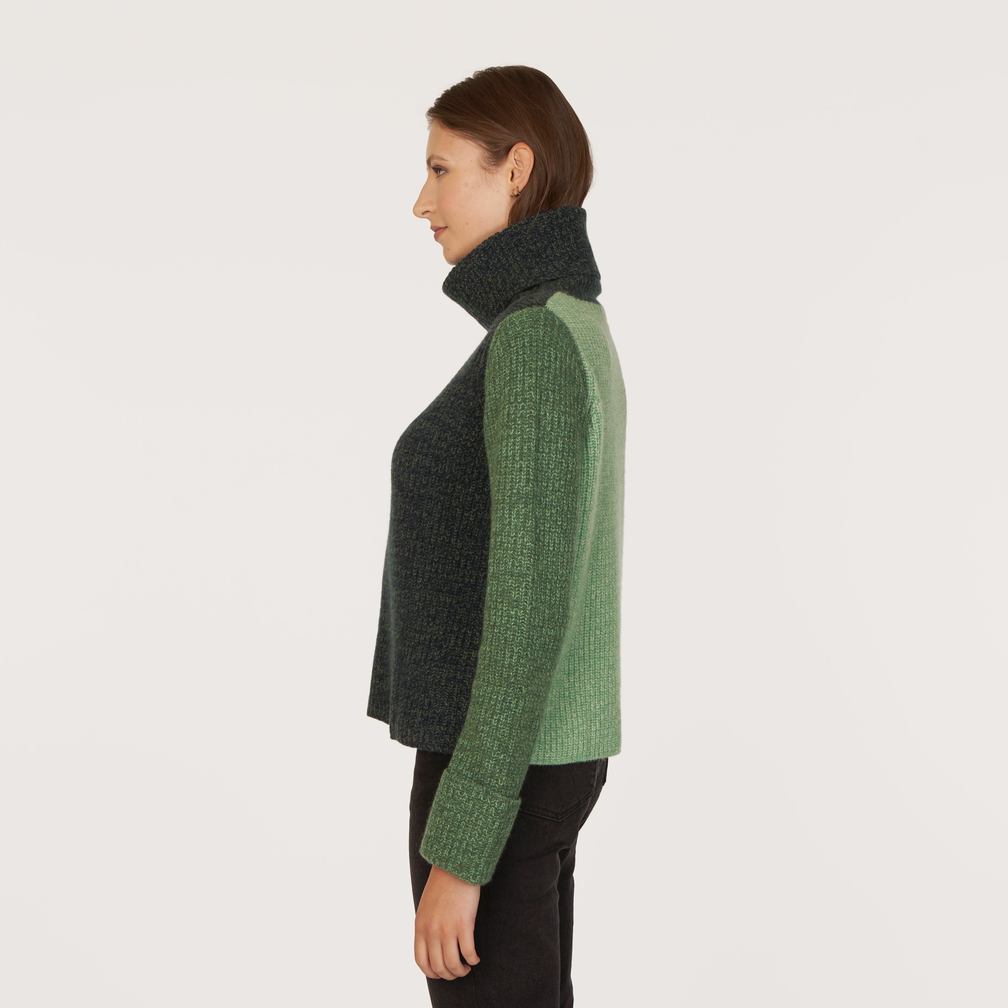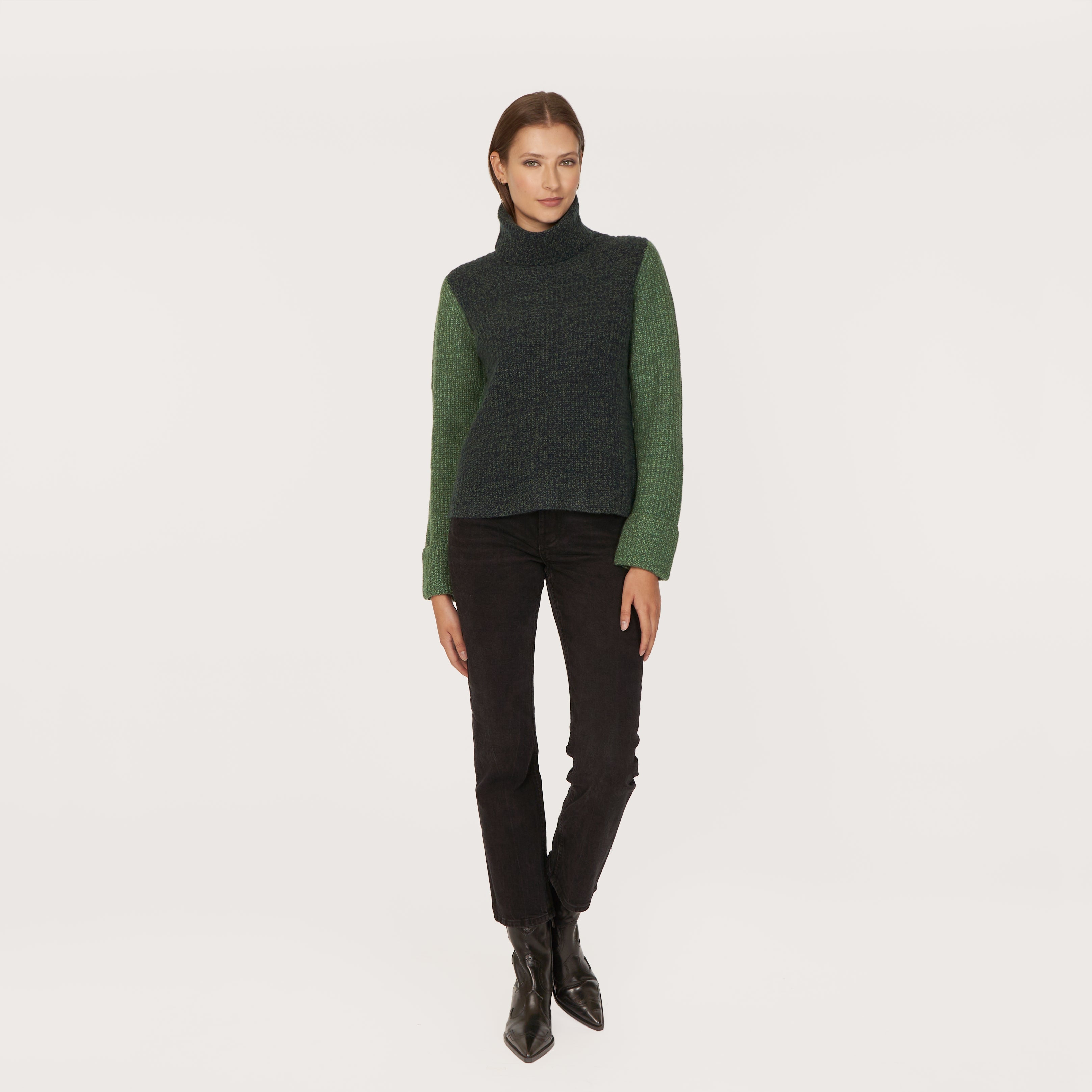 Tweed Color Block Turtleneck in Navy/Pickle