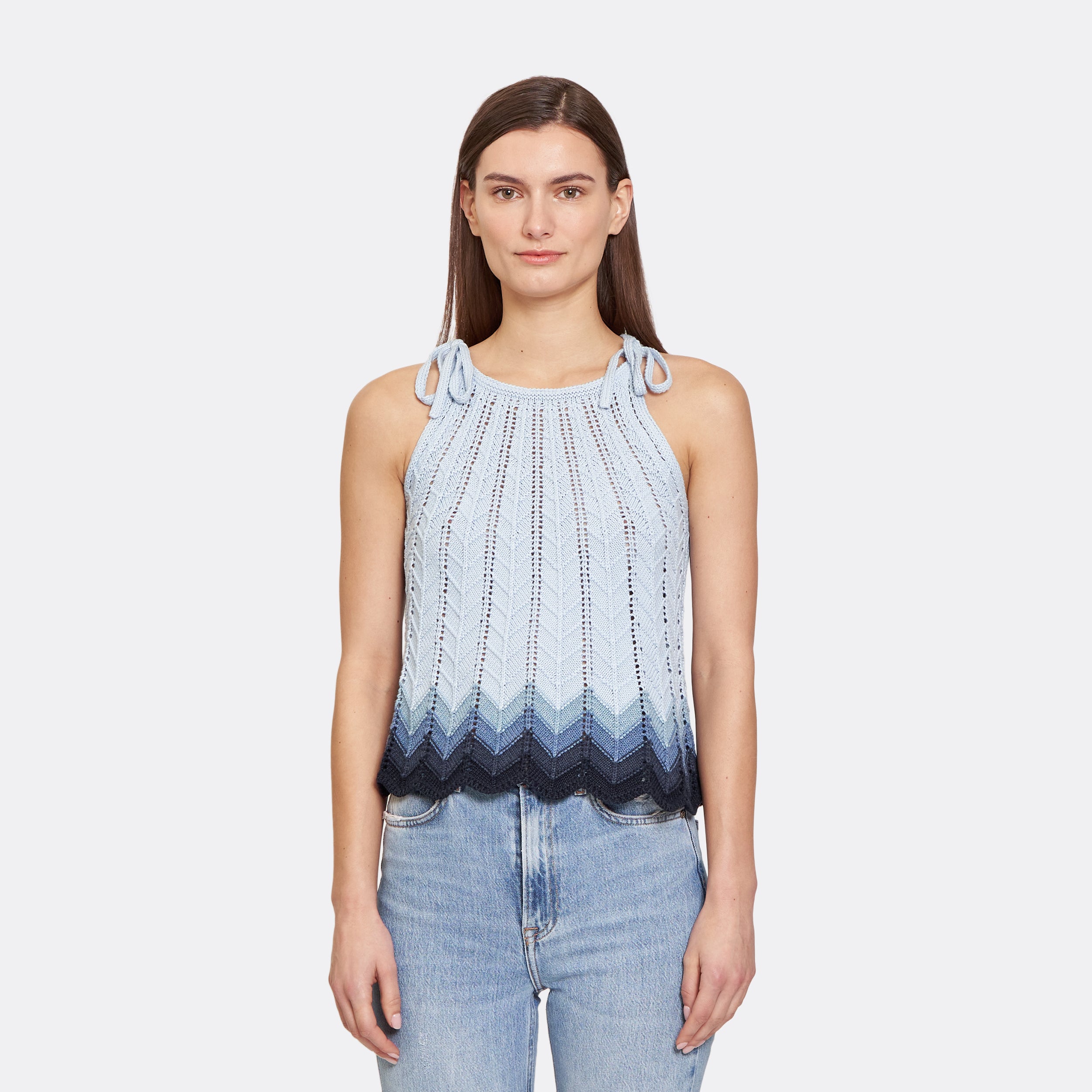 Zig Zag Stitch Flared Halter Tank in Glacier Blues Combo