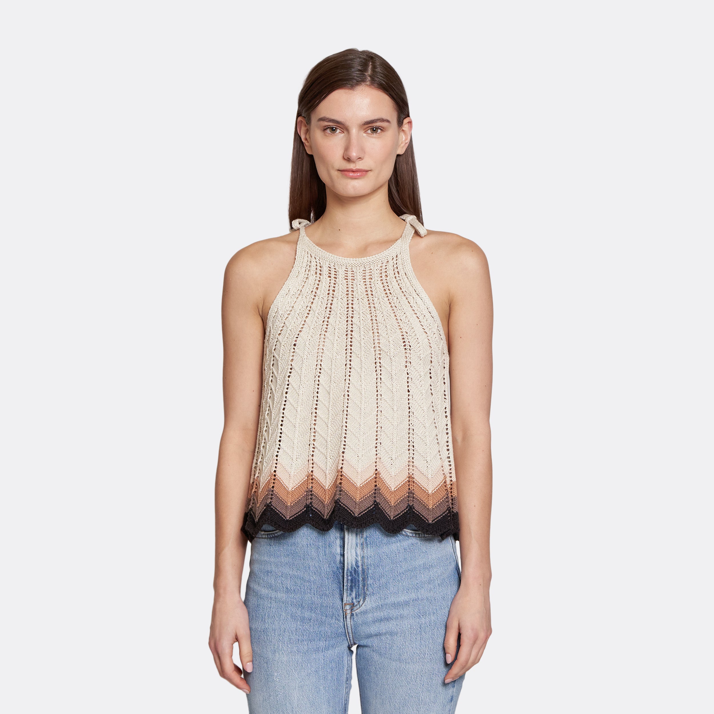 Zig Zag Stitch Flared Halter Tank in Hemp Neutral Combo